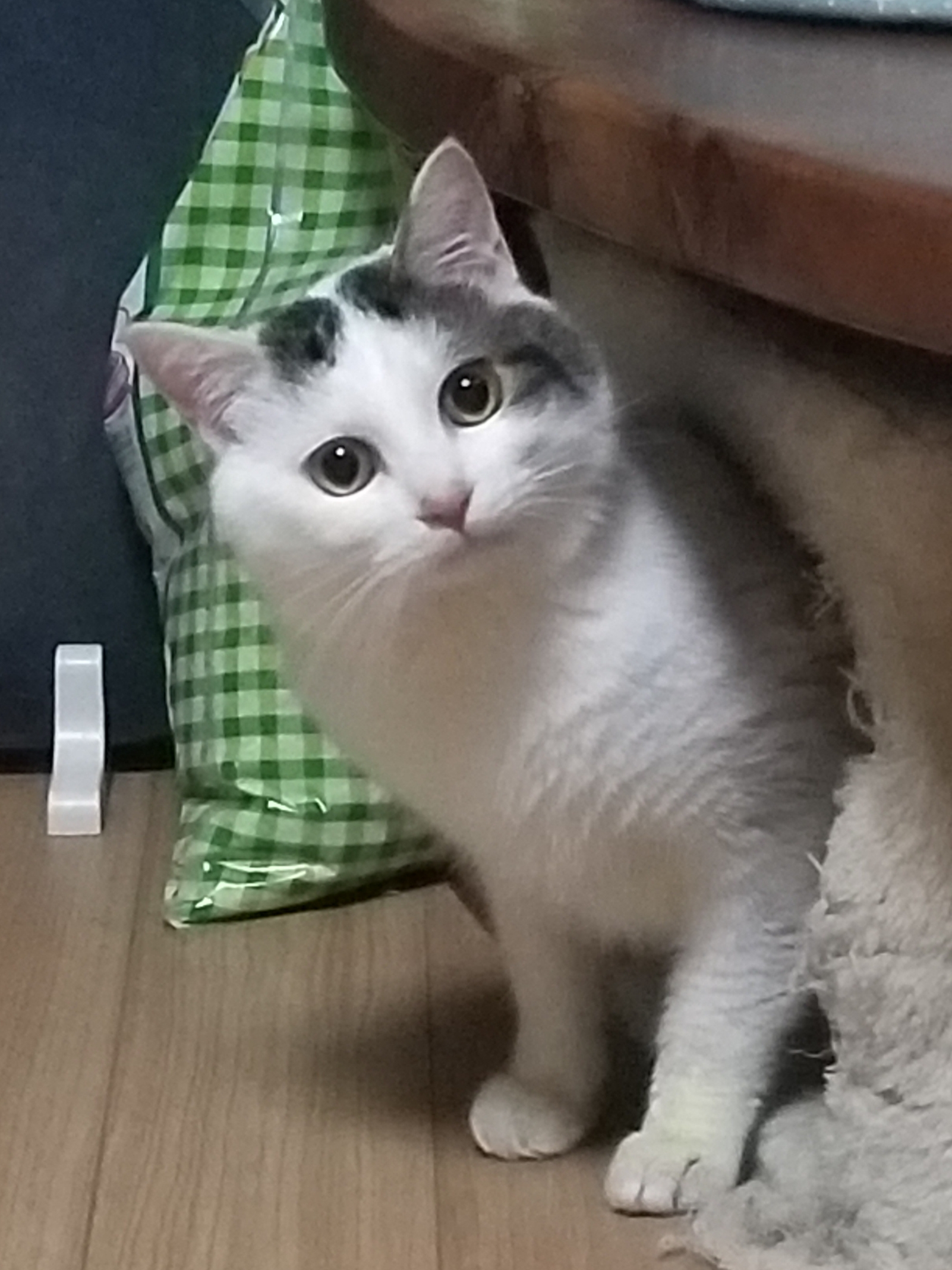 私が帰ってくるとみゃあみゃあ鳴き、物置の下から現れます。