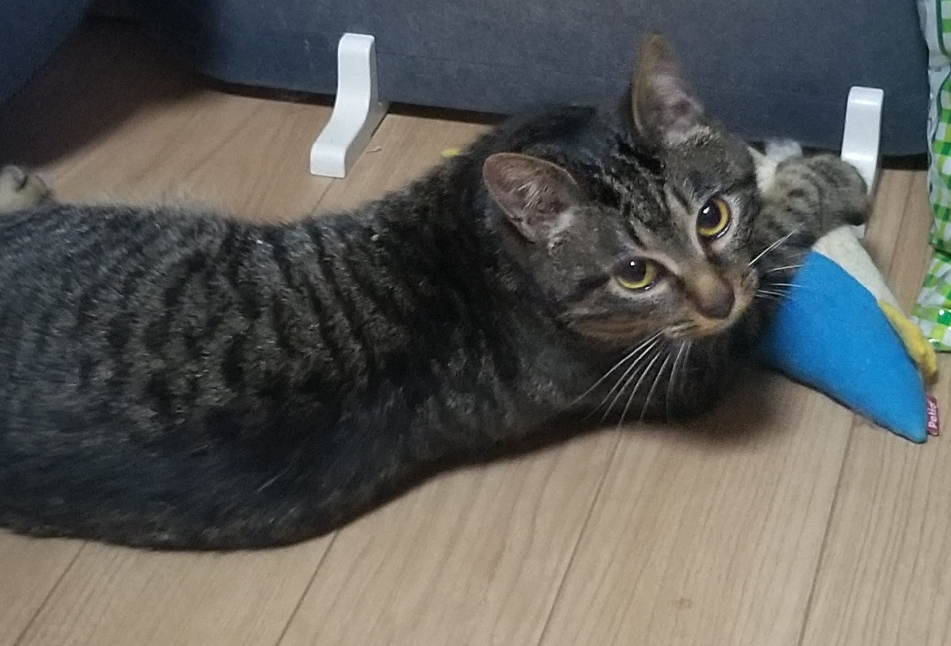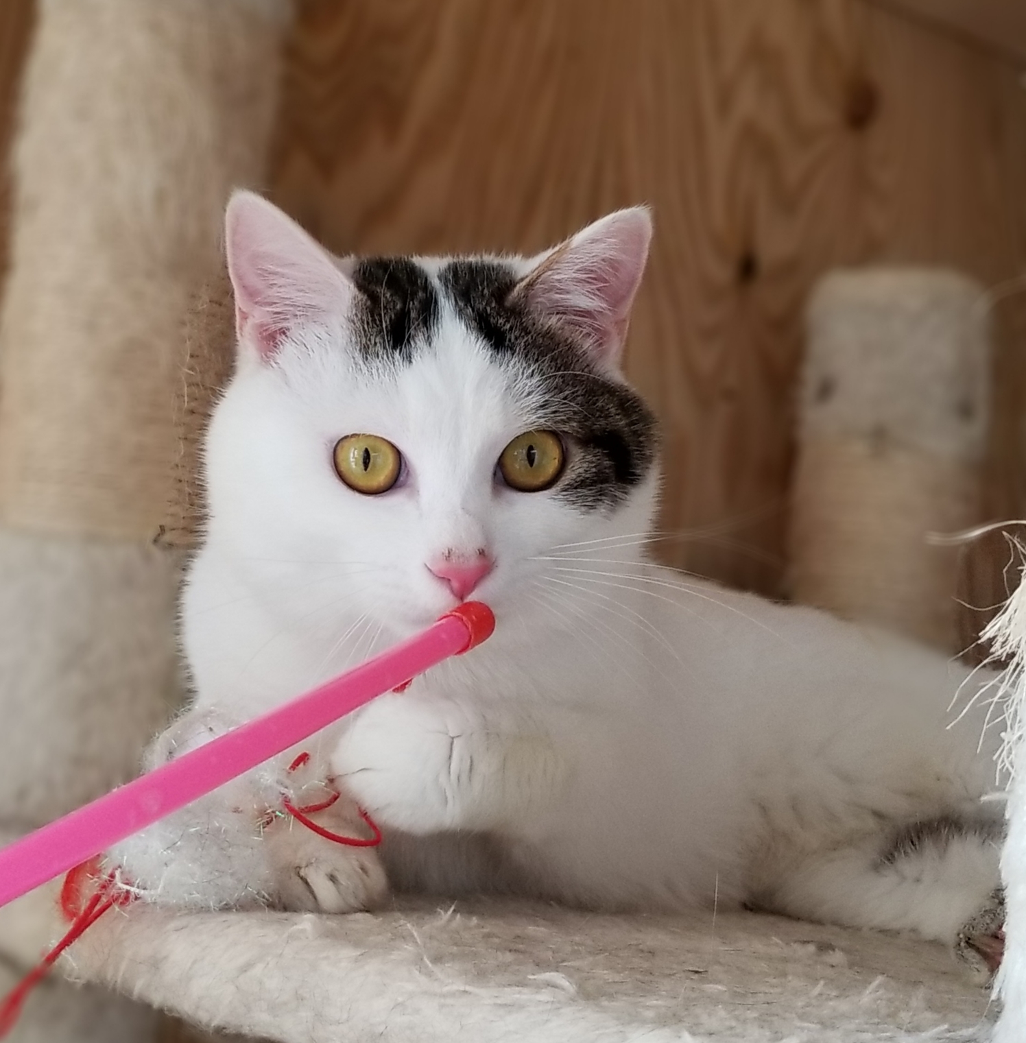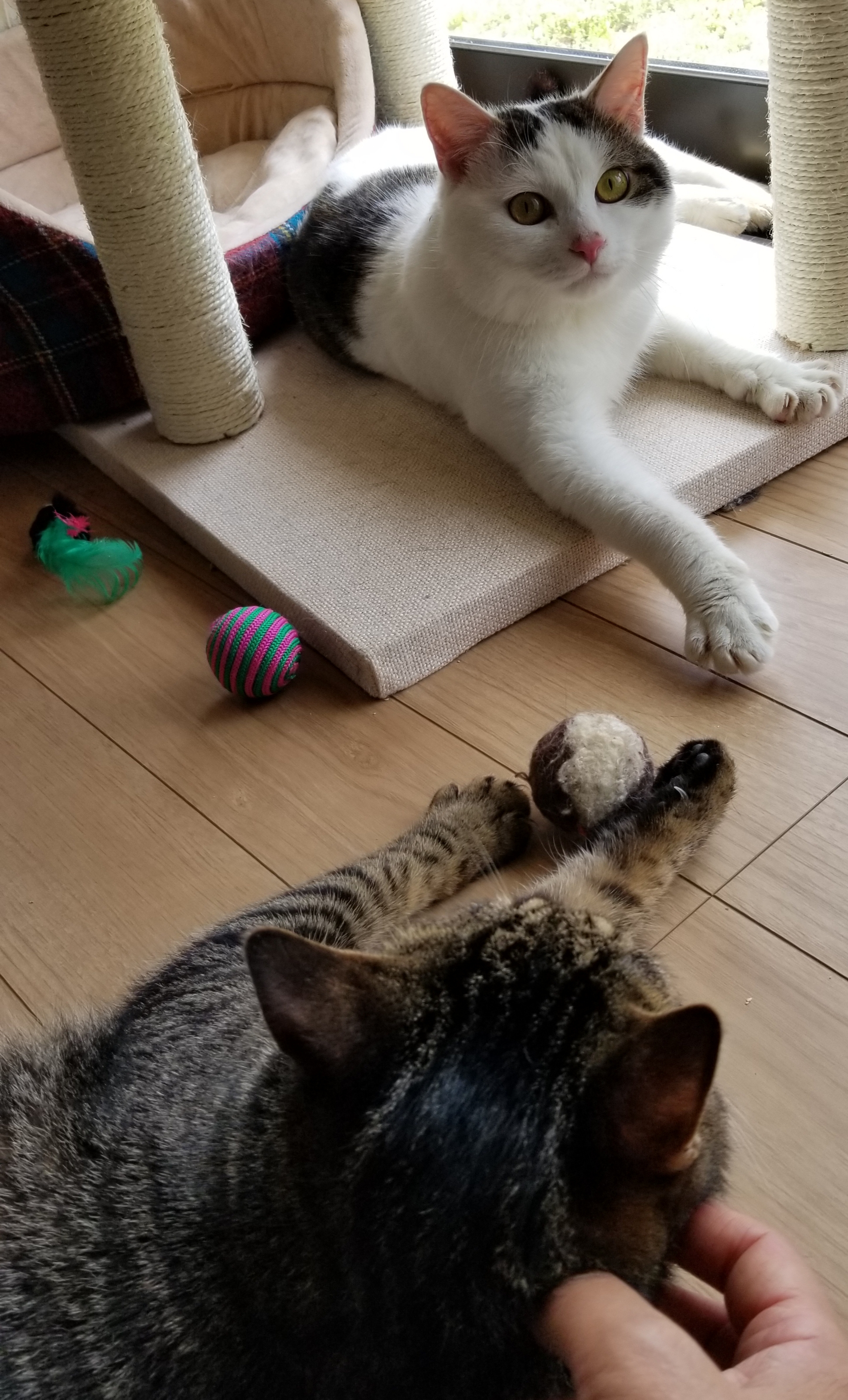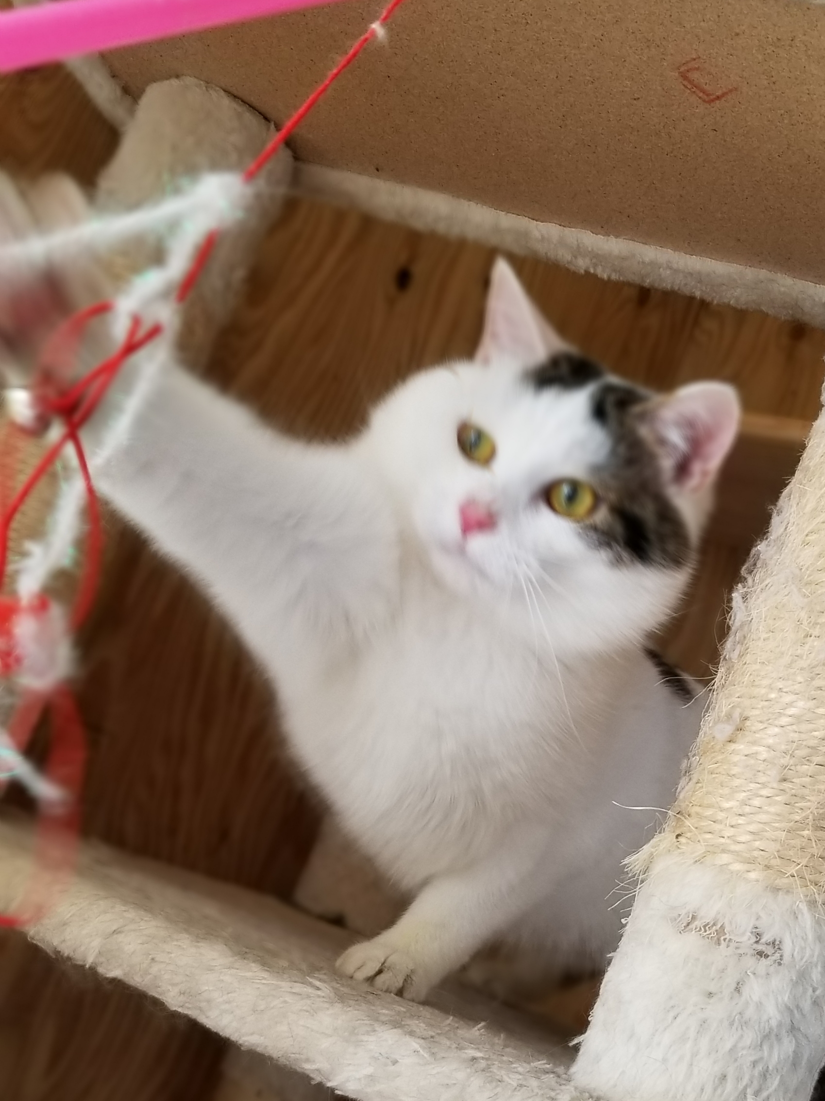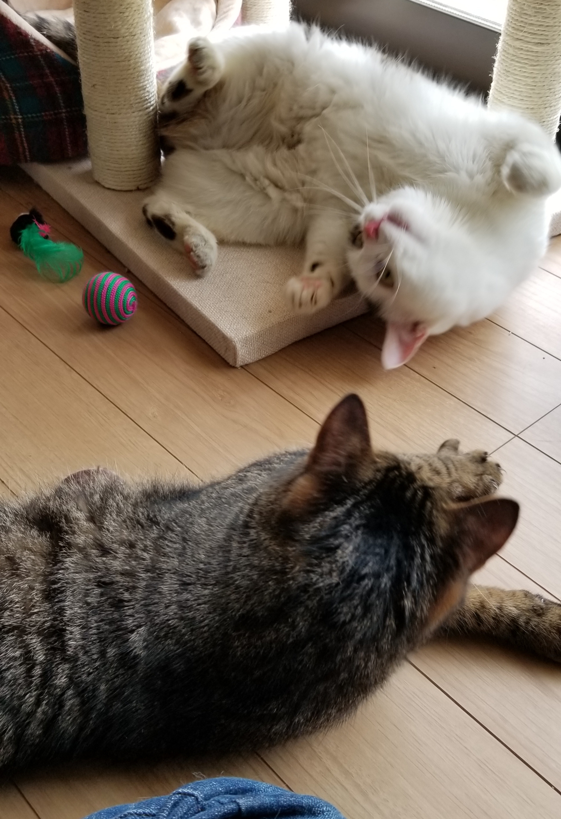 キャットタワーで爪とぎしたり自分の抜け毛で作ったボールで遊んだり子猫らしくなってきました。