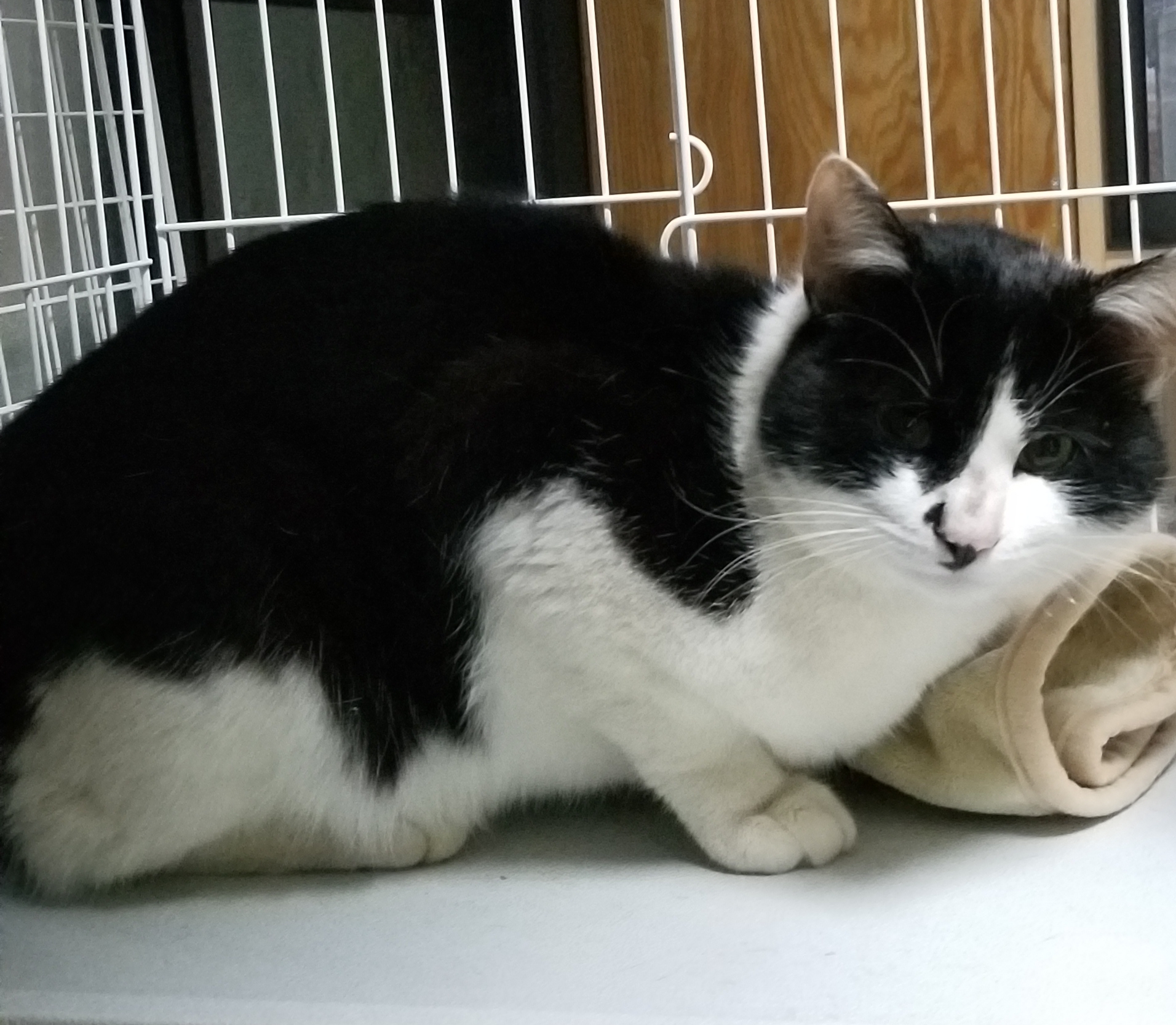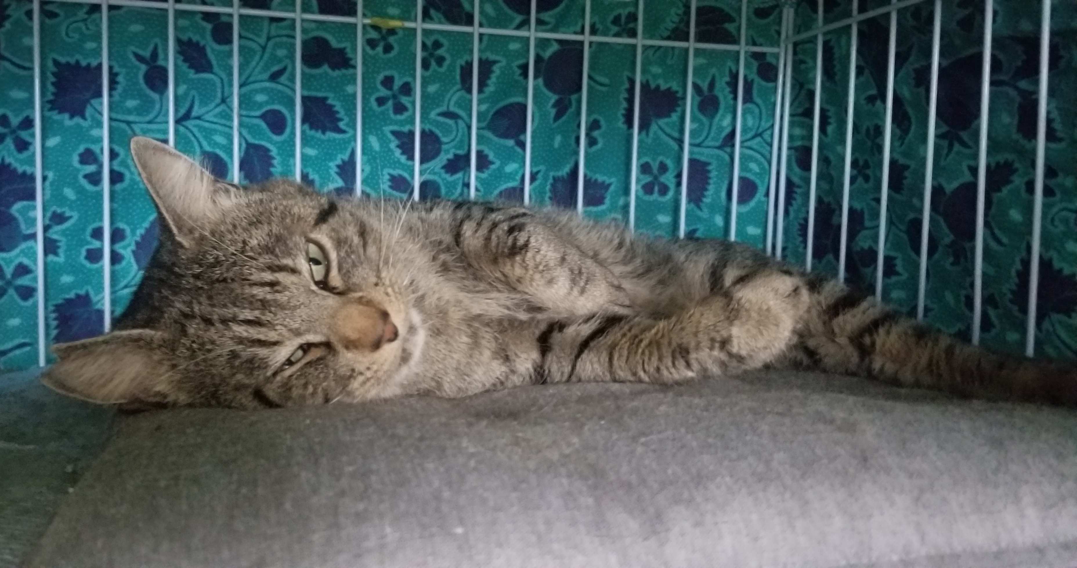 去勢済ですが耳カットはしていません。ゲージに入れても全く動じません。