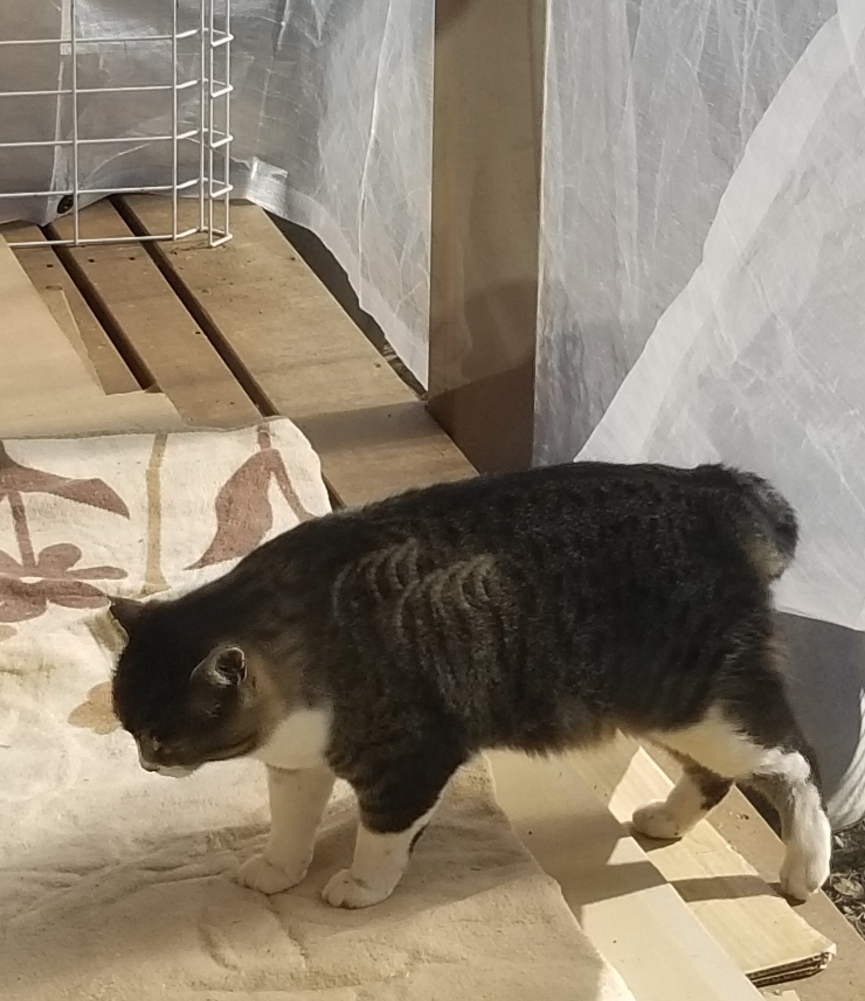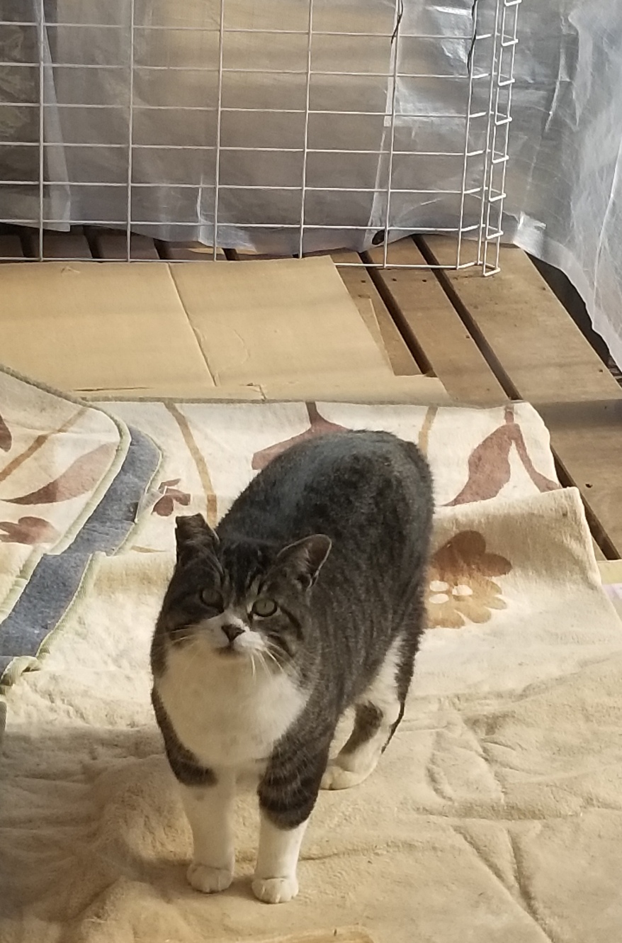 増築した保護猫部屋からあらたくんがみえますね。
