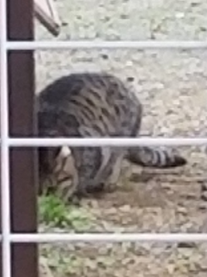 母が庭に来てさっきの子のいた場所の反対側からビビアンが現れ母にスリスリしておねだりしていました。