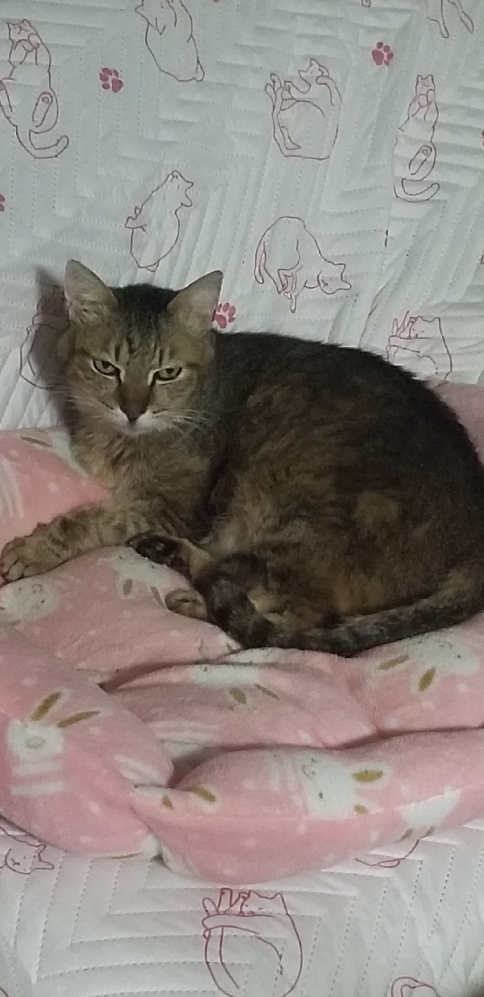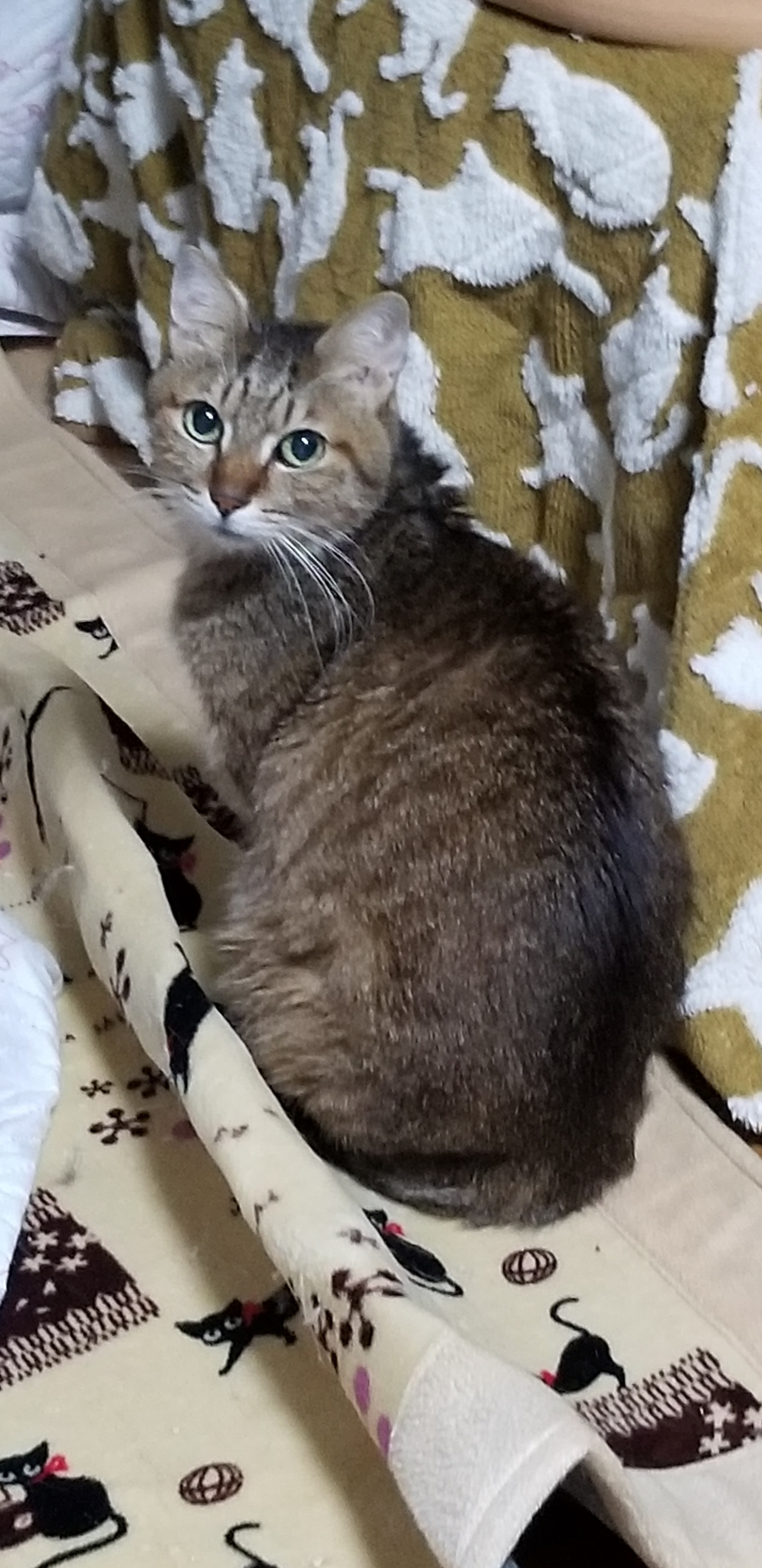10月末に1匹だけ庭で鳴いていてかわいそうに思われてご飯をあげたら居つくようになり保護されたそうです。
