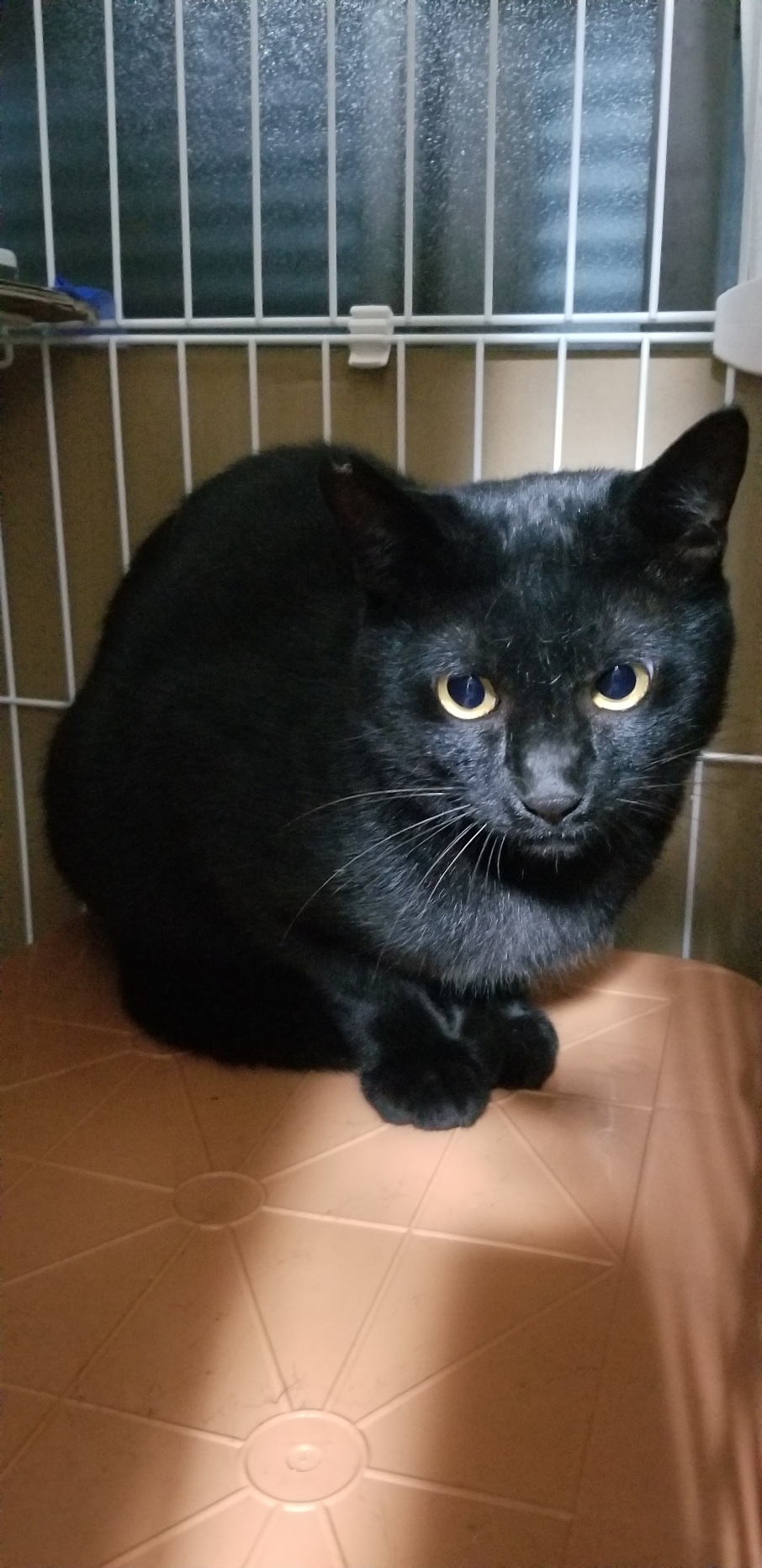 不覚にもまた捕獲器に入ってしまった!と絶望顔の黒猫くん。