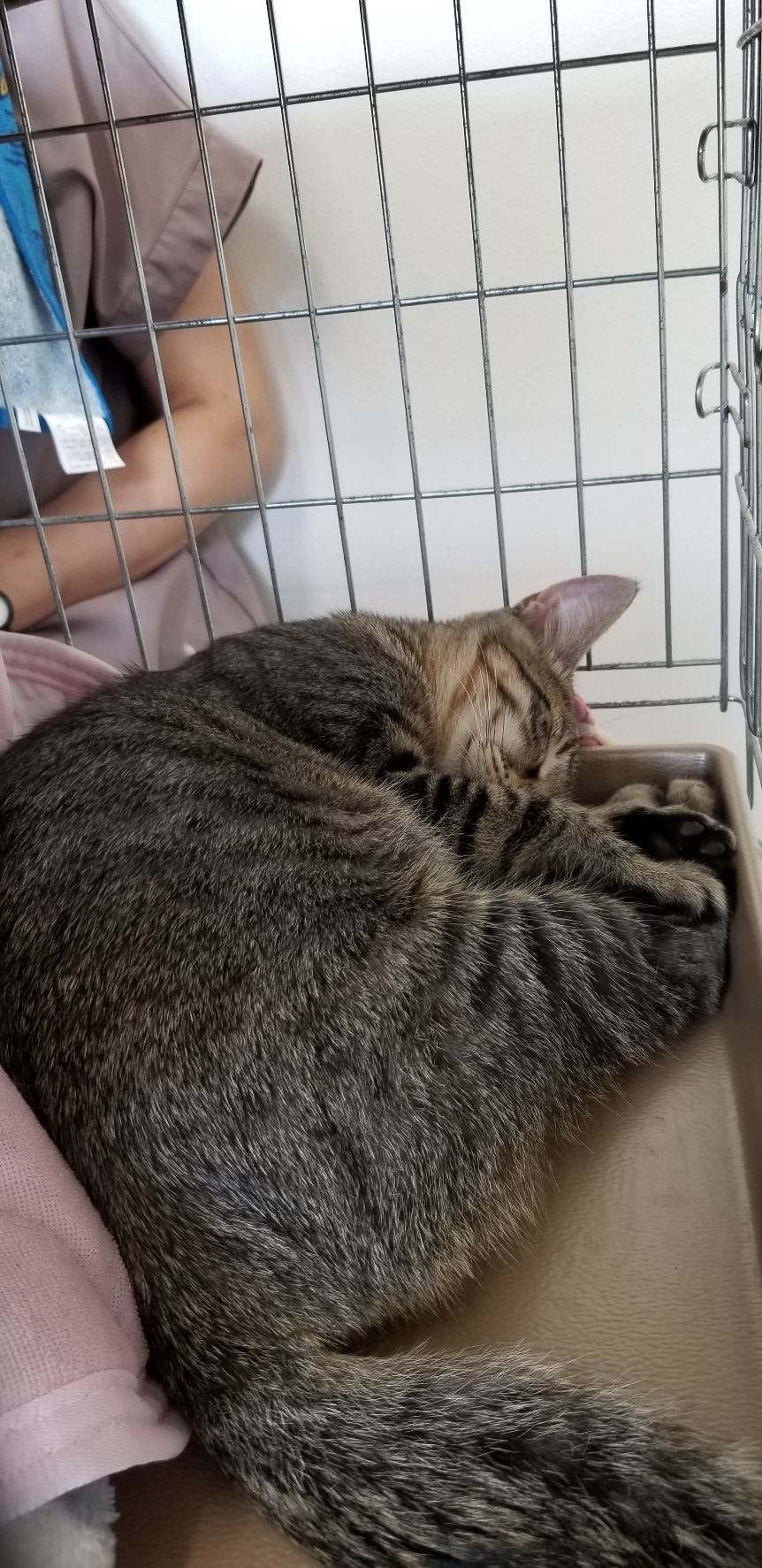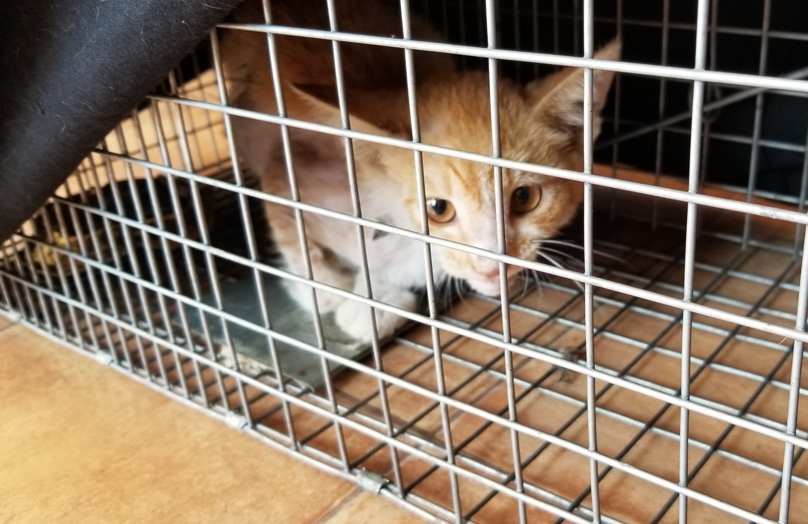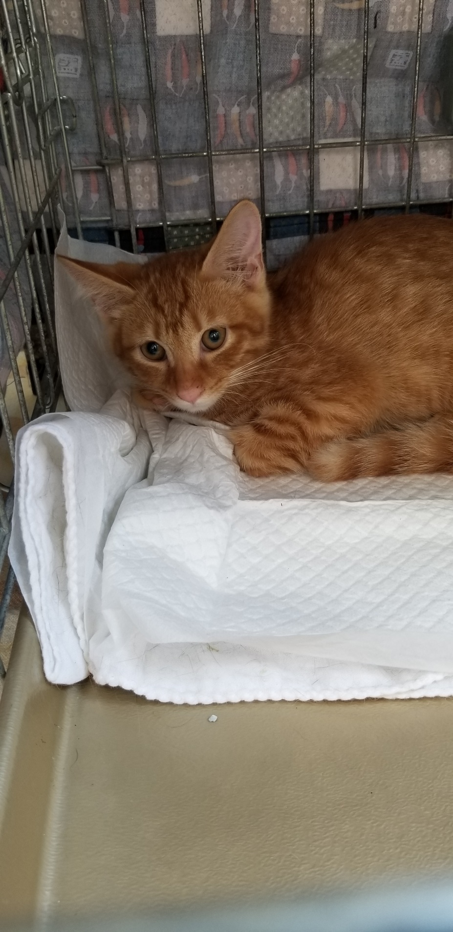 昨夜お貸しした捕獲器に子猫が入ったものの時間も遅く今朝早々に迎えに行き病院へ。