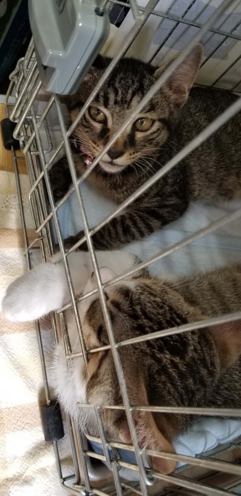 譲渡会の支度をしてサビ姉妹を小ゲージに入れて譲渡会へ!