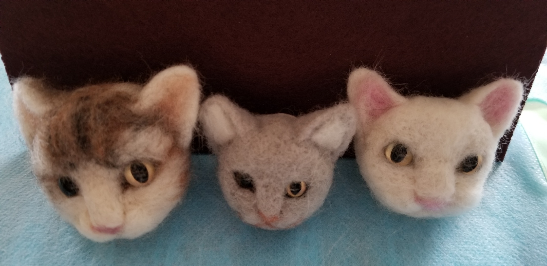 羊毛フェルトの猫ブローチ、夜なべして作りました!