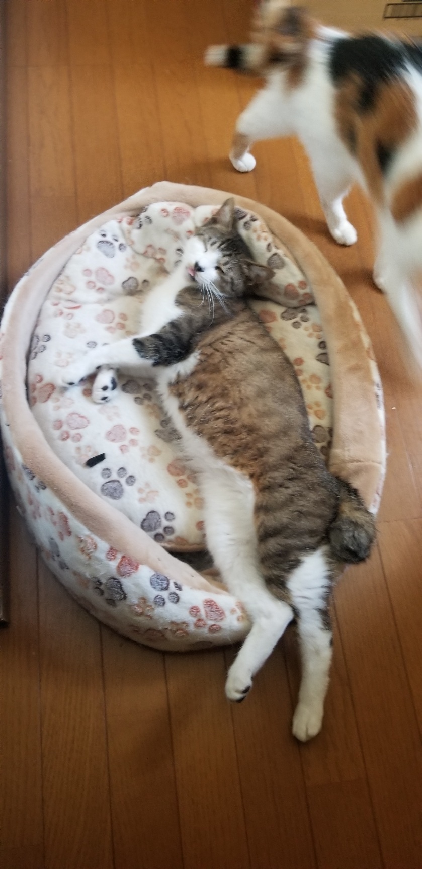 少し表情が柔らかく、同室の他の猫たちにも興味を示すようになりました。
