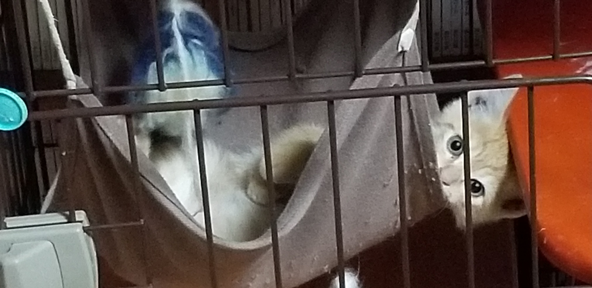 日曜の夜に知らない番号から電話があり、自宅隣の倉庫の床下で仔猫が昨日から鳴いているとのこと。