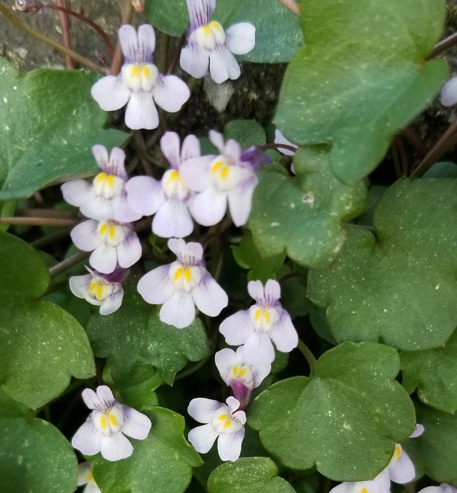 向こうの家の庭の花です。玄関横の小さな花壇と勝手に生えてきた小さなお花。