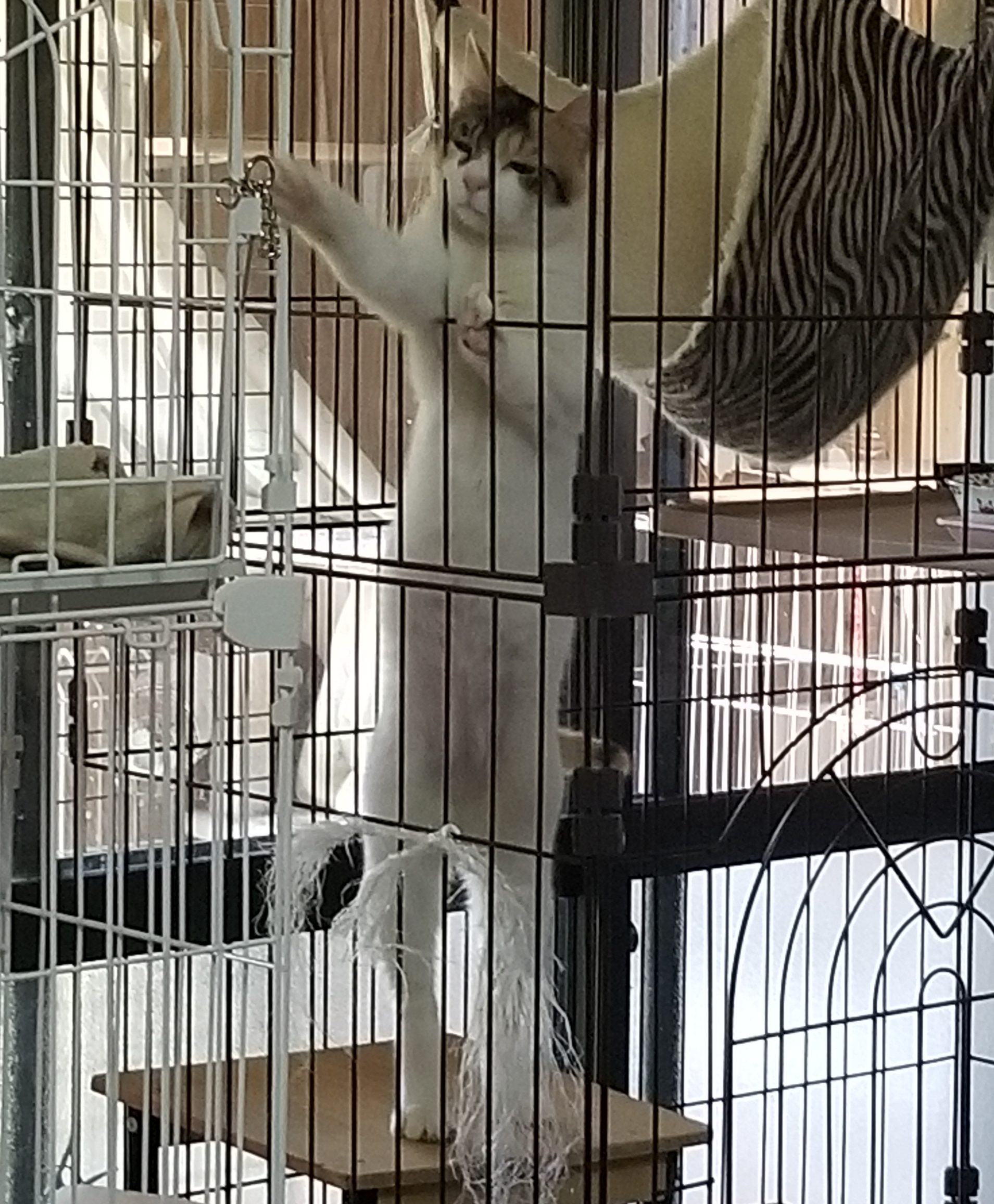 隣のゲージのルイ君におちょっかいを出したり、ルイくんの敷物を引っ張り込んだりとちょいといたづらが好きな子です。