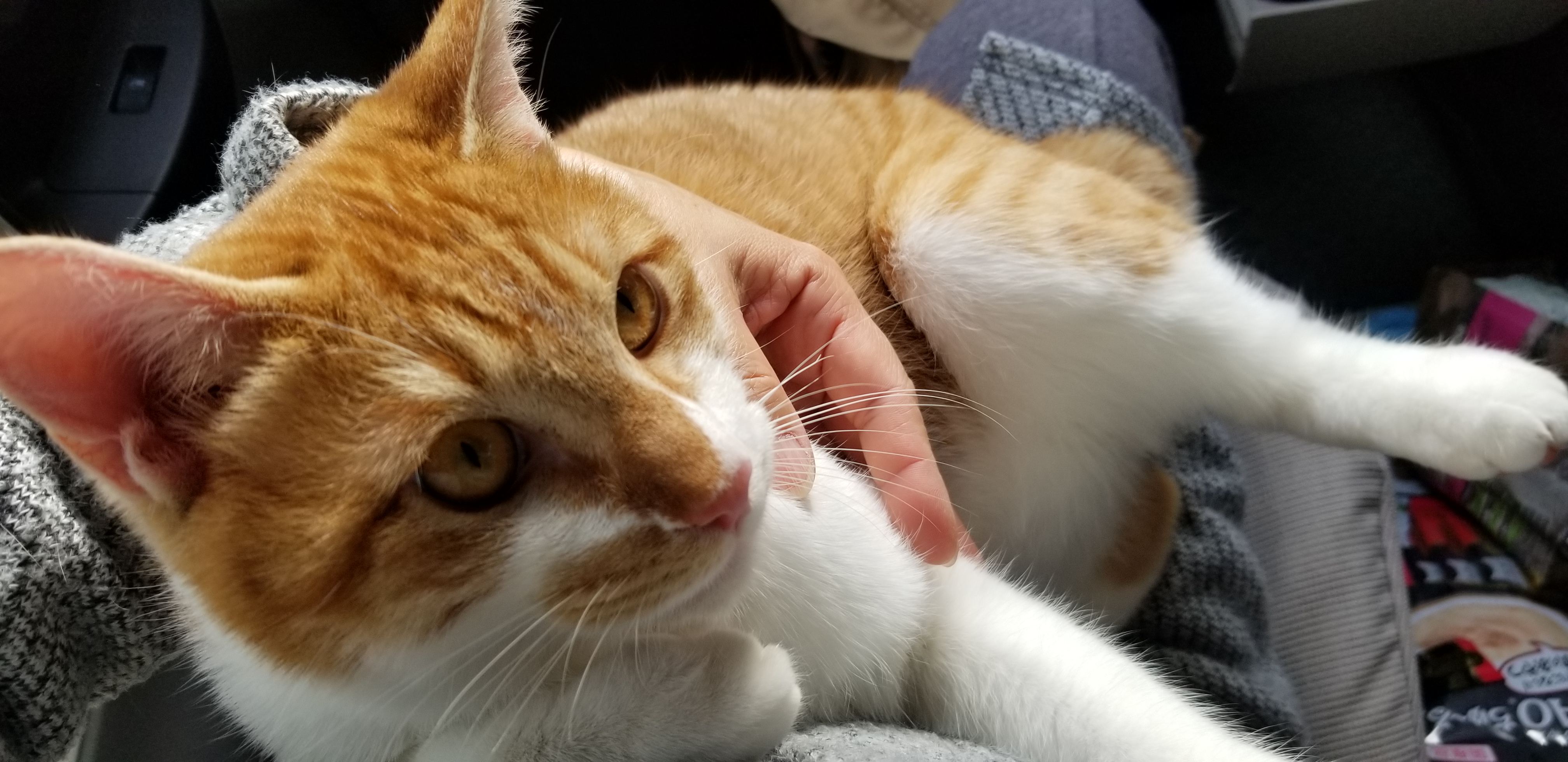 保護時にトイレやらキャリーやらを預かっていたので後部座席は荷物の山でした。