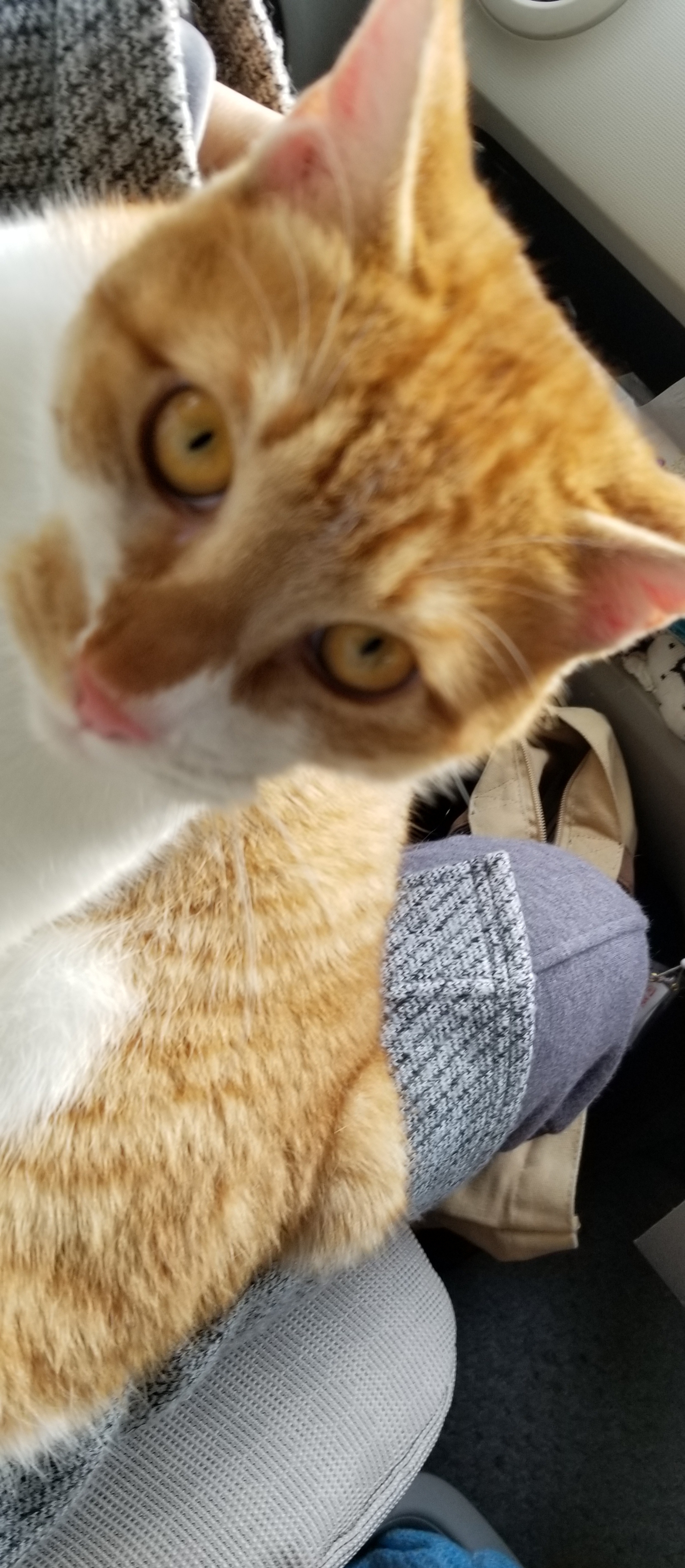 ちゃむくん、キャリーの扉を開けてにゃにゃんといって運転席と助手席の間に現れたんです!