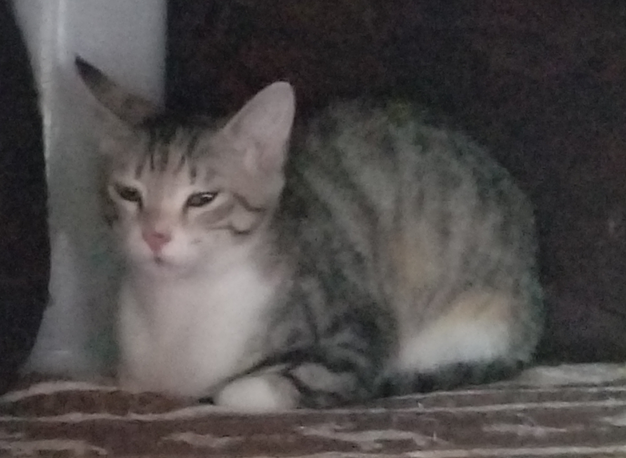 こたつの中で眠っていたところにお邪魔したのでウトウト眠そうですね。