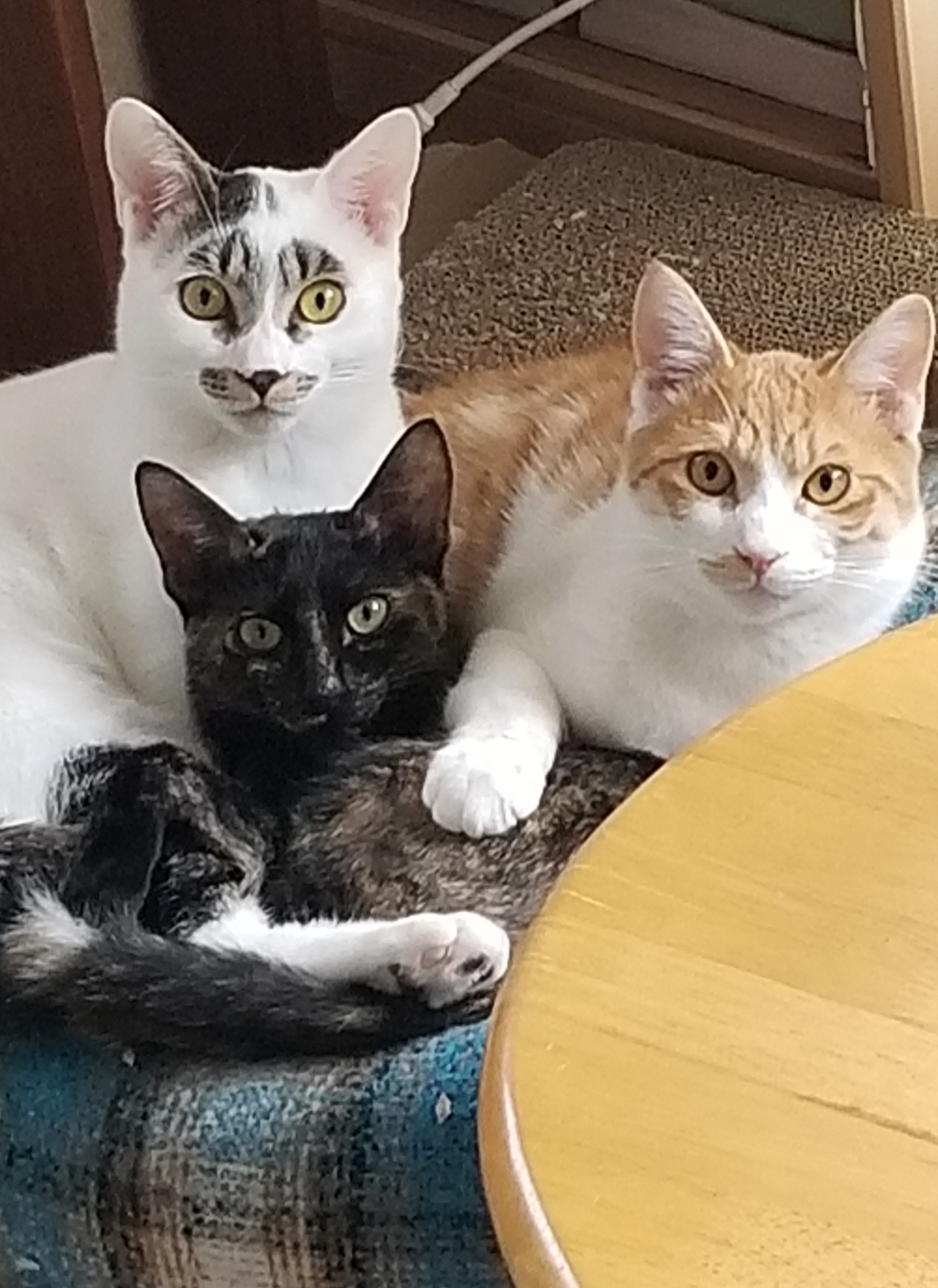 個性豊かな3にゃんがお団子になって寝ていたり日向ぼっこしていたりと幸せに過ごしているようです。