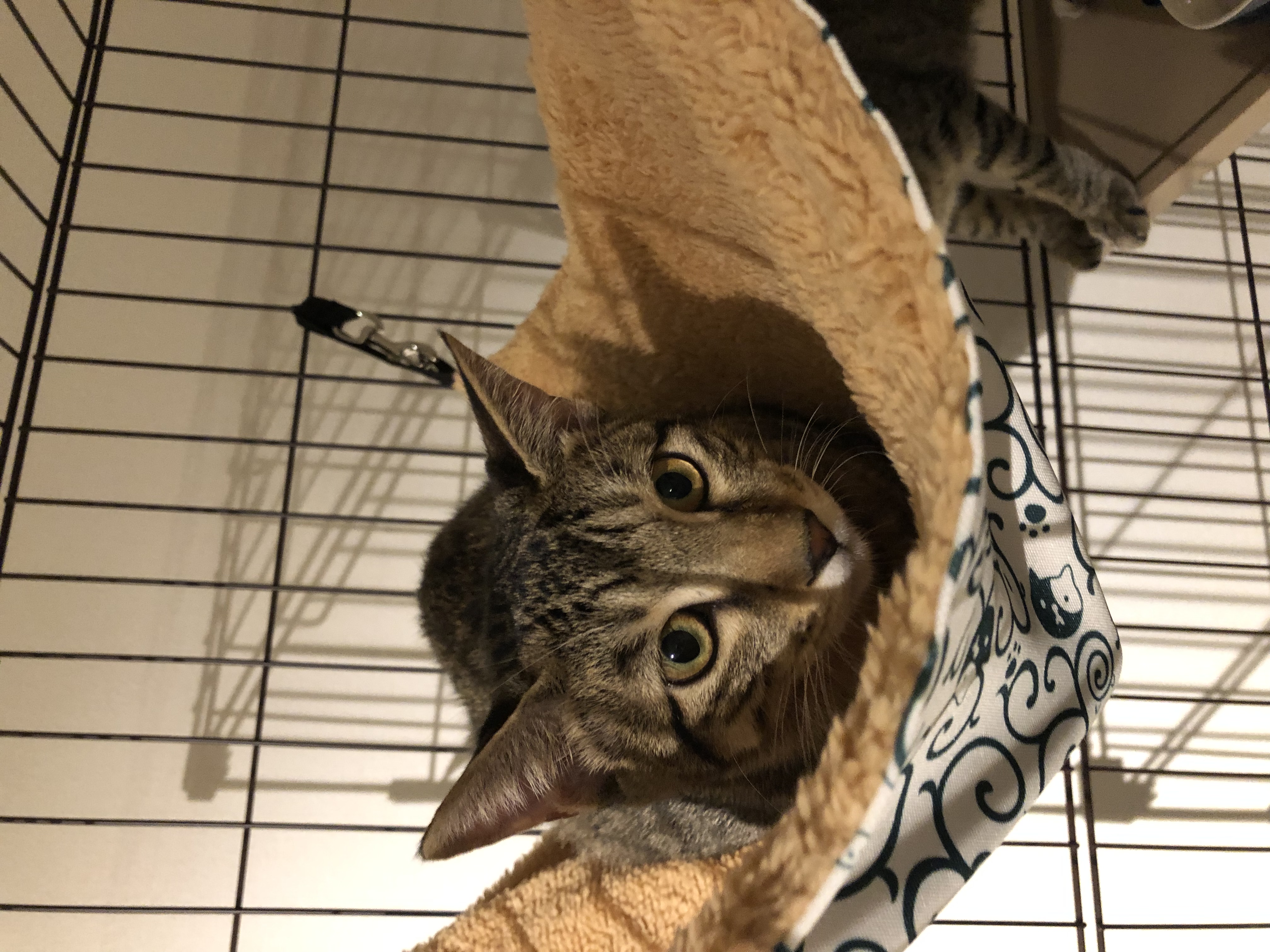 でもその鋭い爪と無条件に可愛いしぐさ、そのお目目で「だっこ~~!!」ってゲージから見つめられるとつい抱っこしてしまいます。