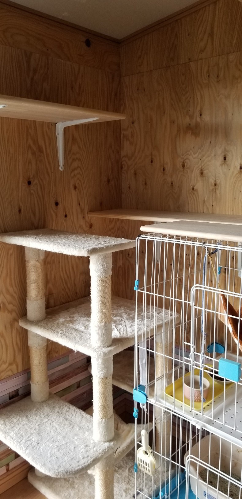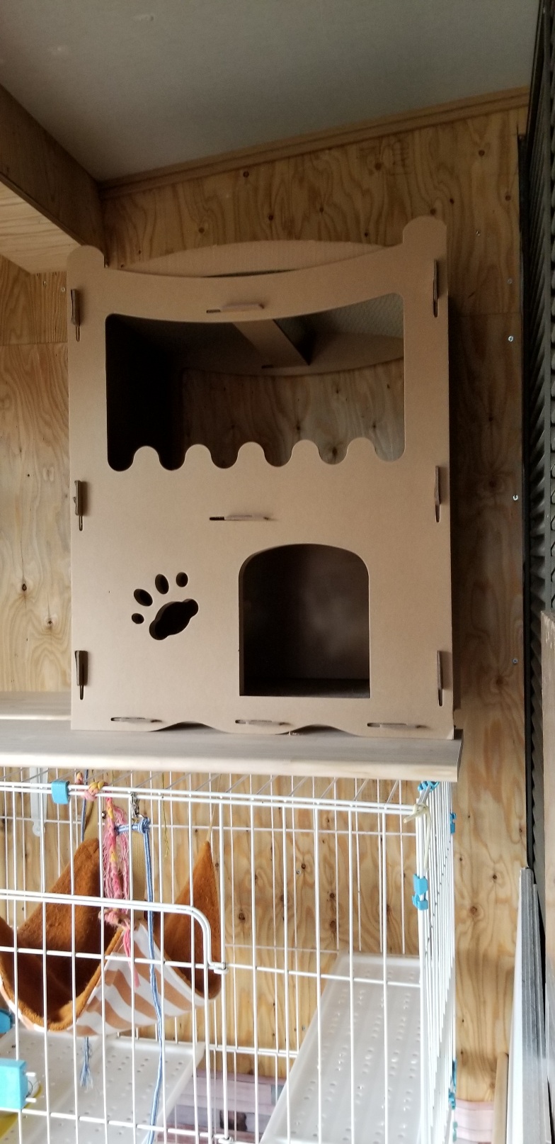 昨日は朝から保護猫部屋の最終段階に向けて猫でもドアの取付、猫タワーの制作依頼(父作です)