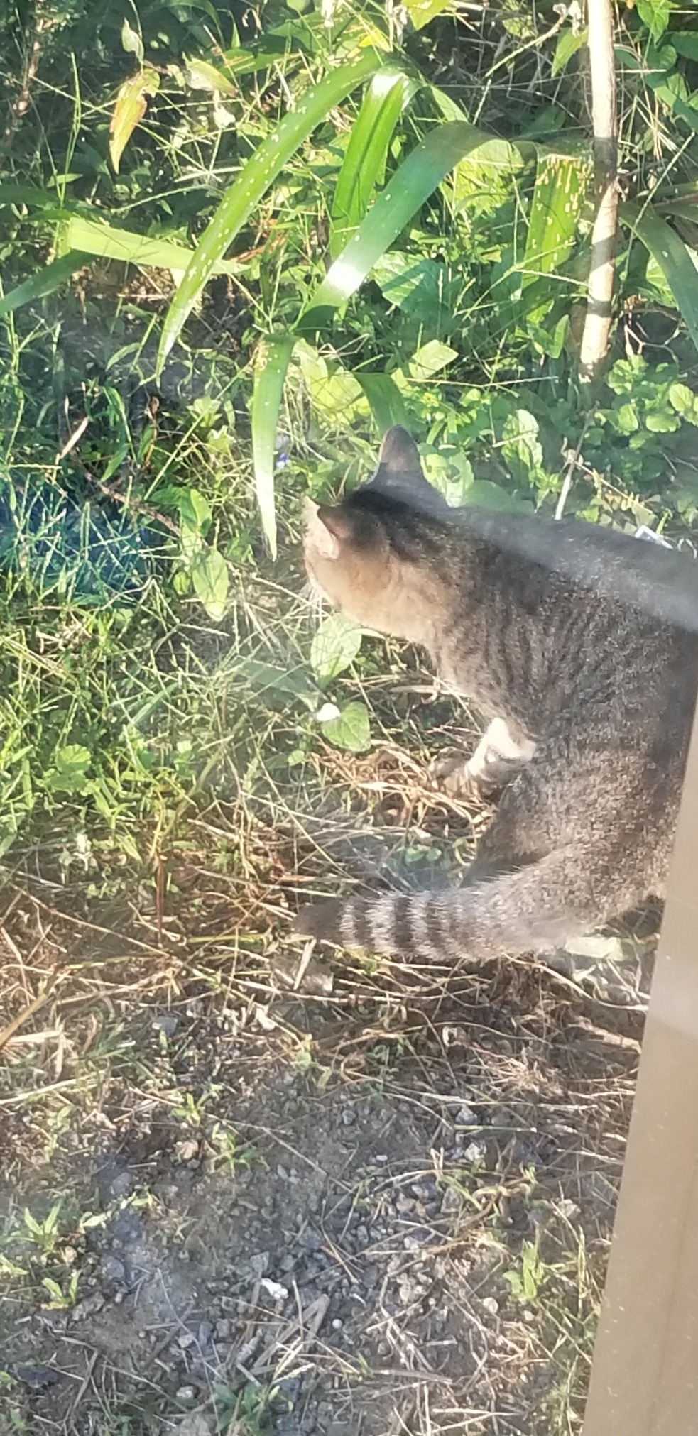 ウッドデッキにご飯を置いて出入口を開けていますが、みーちゃんが来てしまい2匹は姿も見せません。