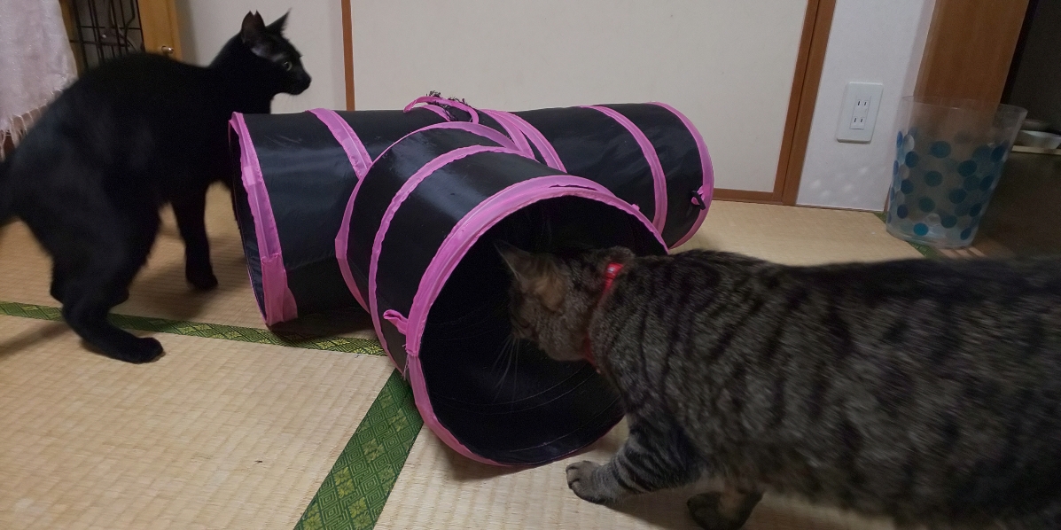 ようやく2匹で遊ぶようになりましたが、結構固まっておりました。
