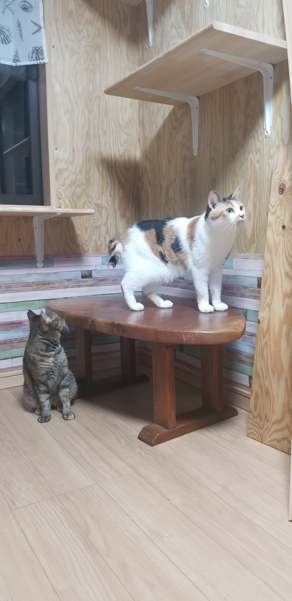 それから保護猫部屋に棚板を付けたりしました。