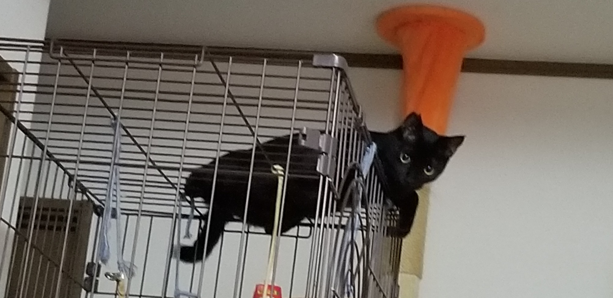 ゲージに入れているので骨折してしまったのか?状況は不明ですが、着いていますし痛がる感じでもないので様子を見ます。