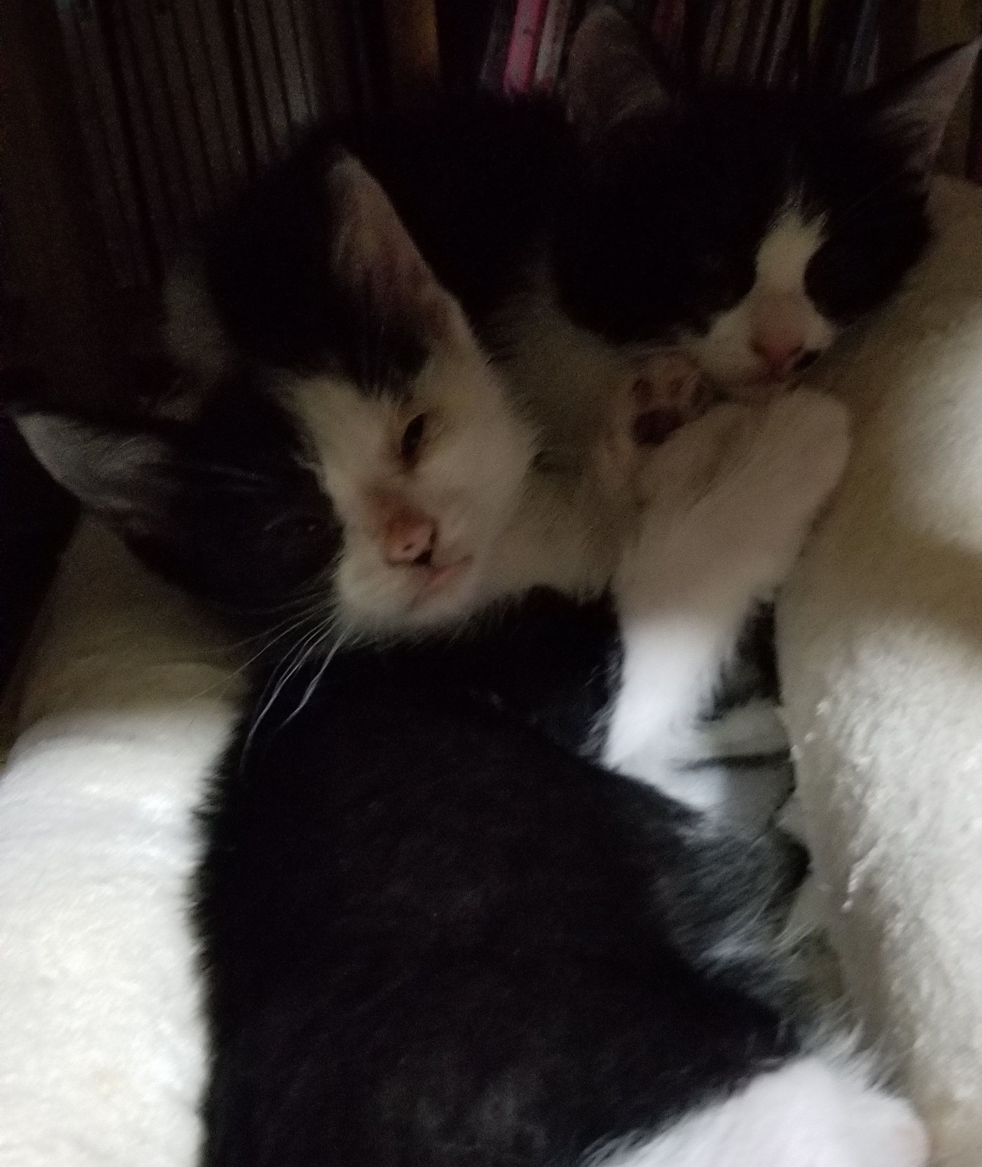 6匹の子猫が居なくなってから、別の母猫が庭で暮らしていたこの2匹を家の中に運んできたそうです。