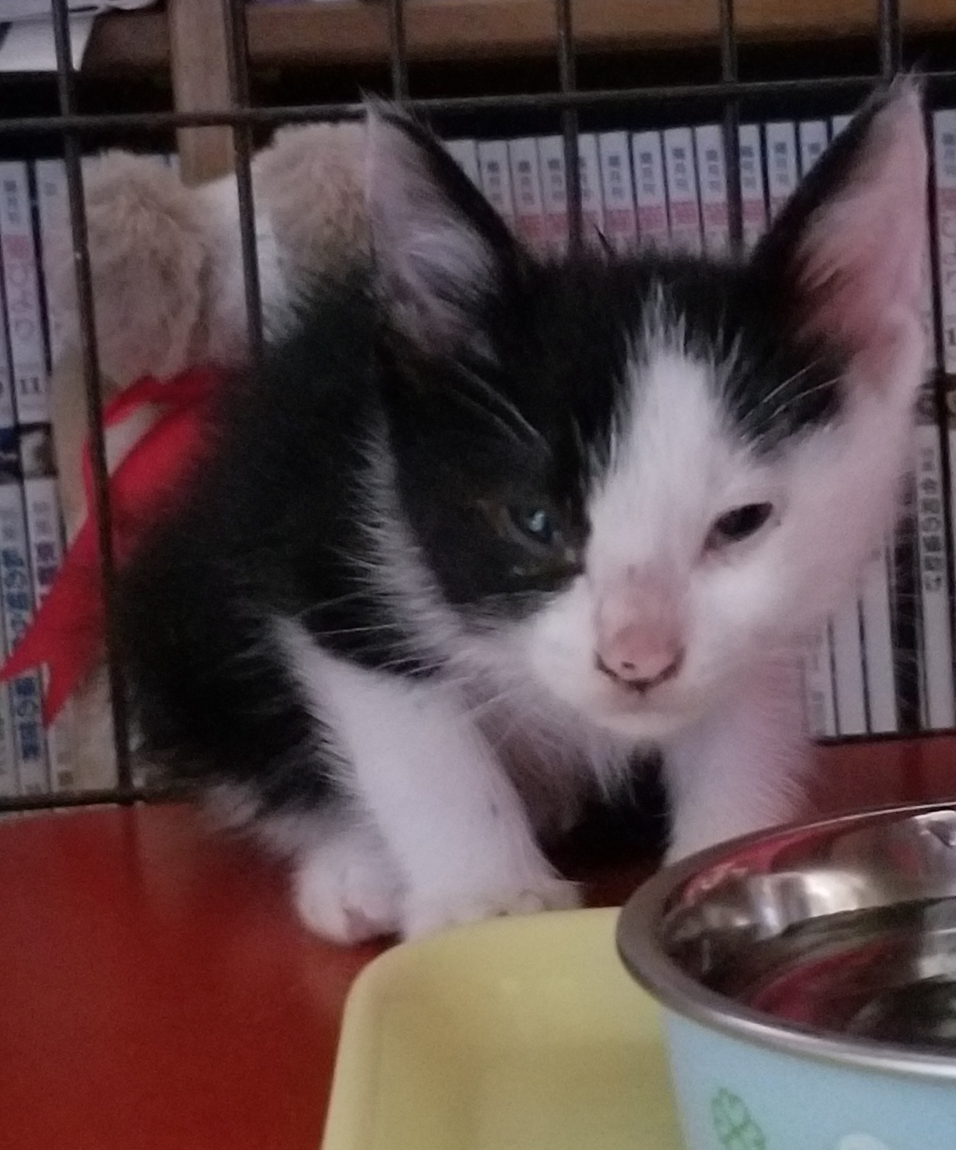 白黒の男の子。去勢済ですが耳カットはしていません。