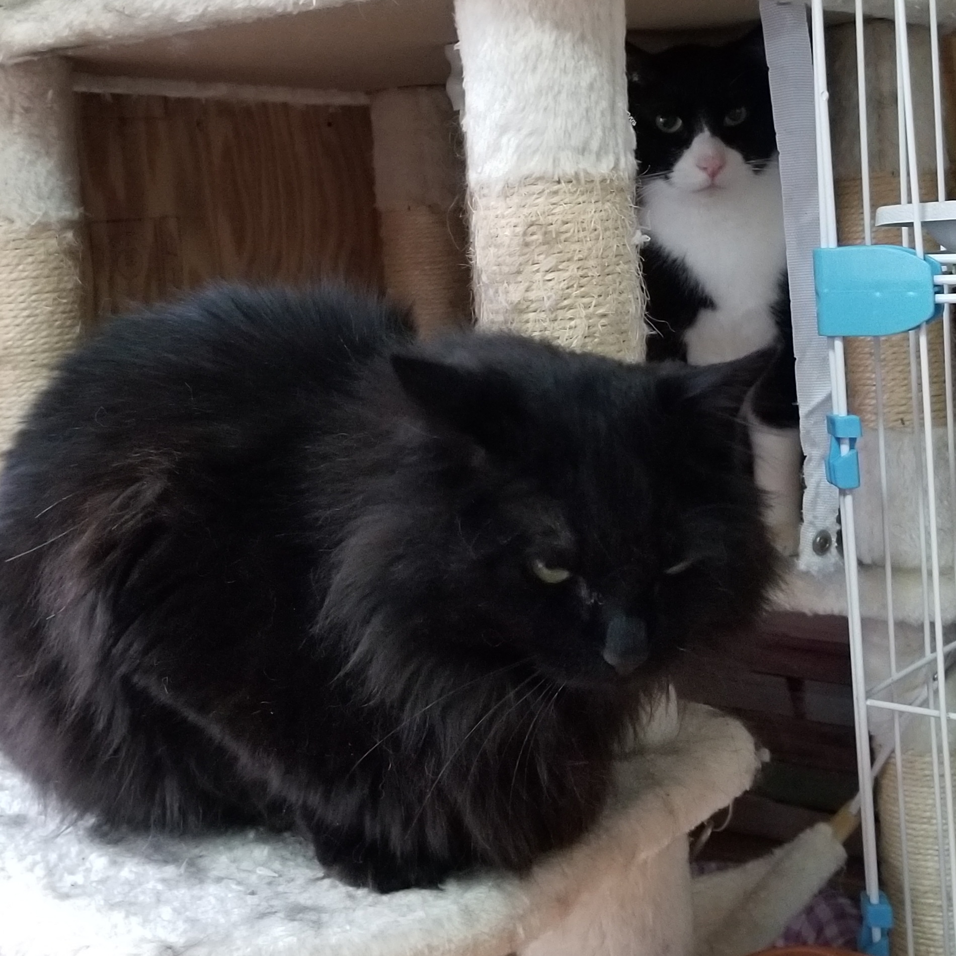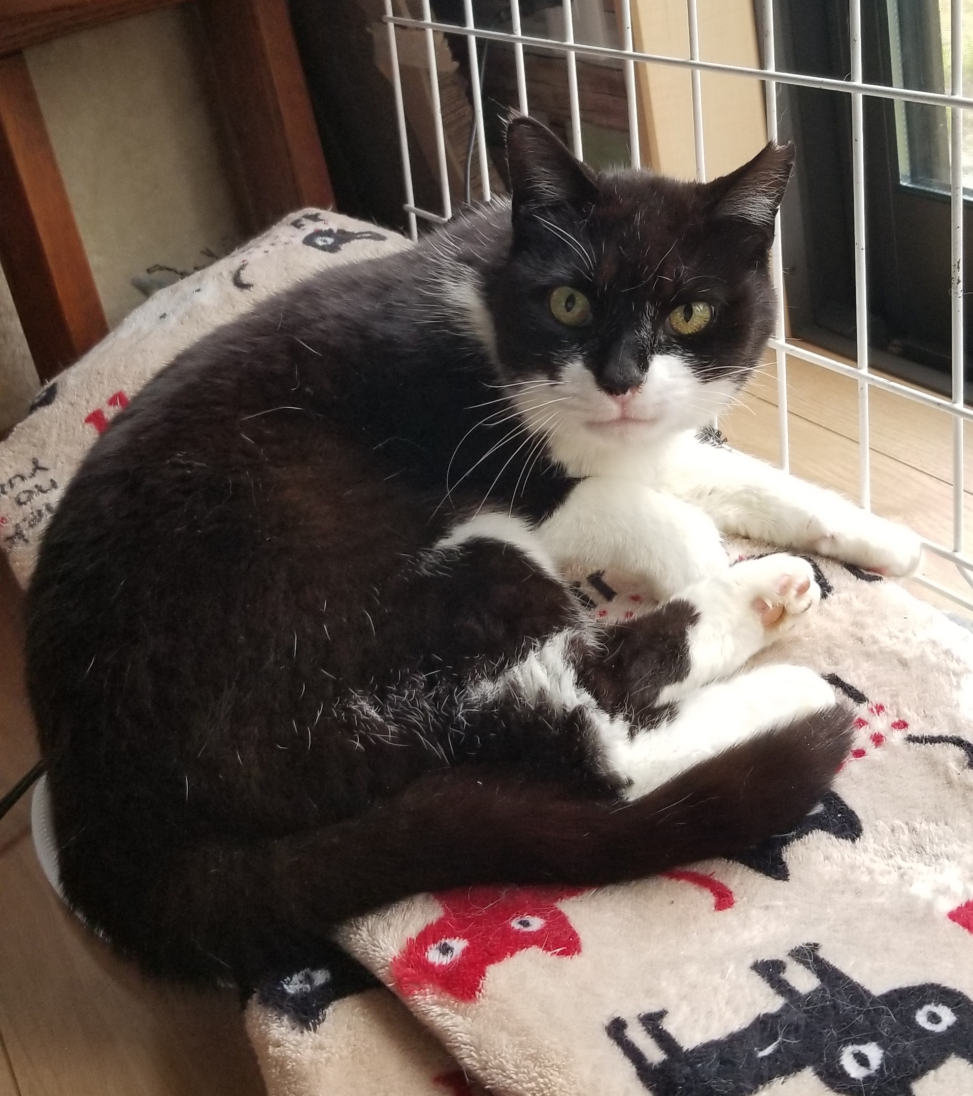 保護猫部屋に先にいた京香ちゃんにも従順で、新しい保護猫ノワールにも寛容。