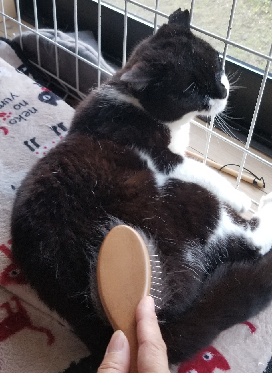 ブラッシングは大好きでゴロゴロ言いながら体の向きも変えてくれます(笑)