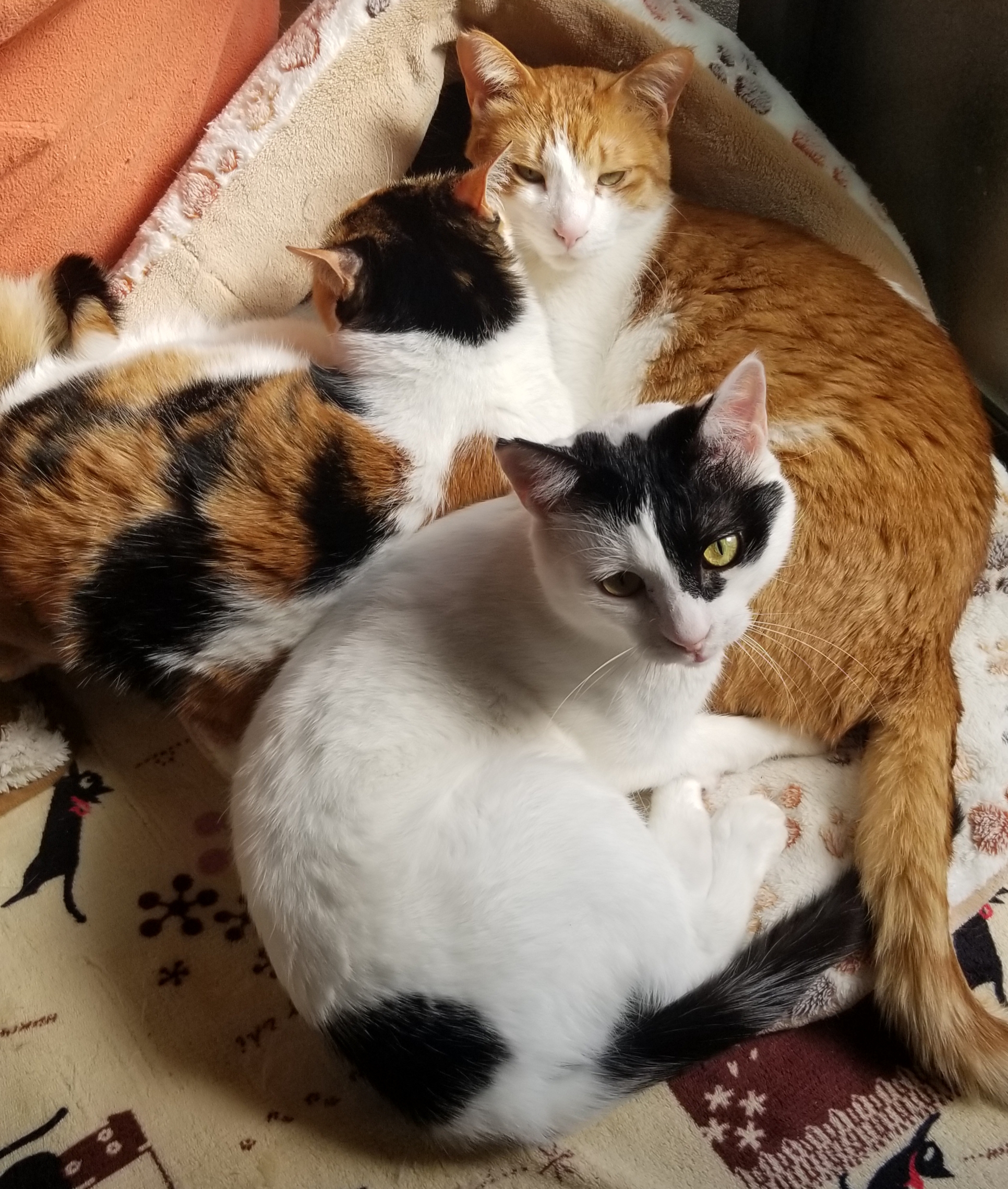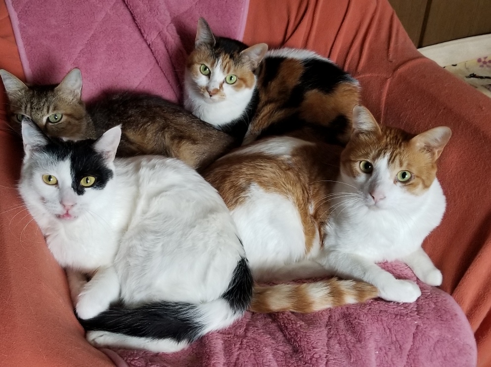 寒い時は猫暖房が大活躍! お昼の4にゃんです。