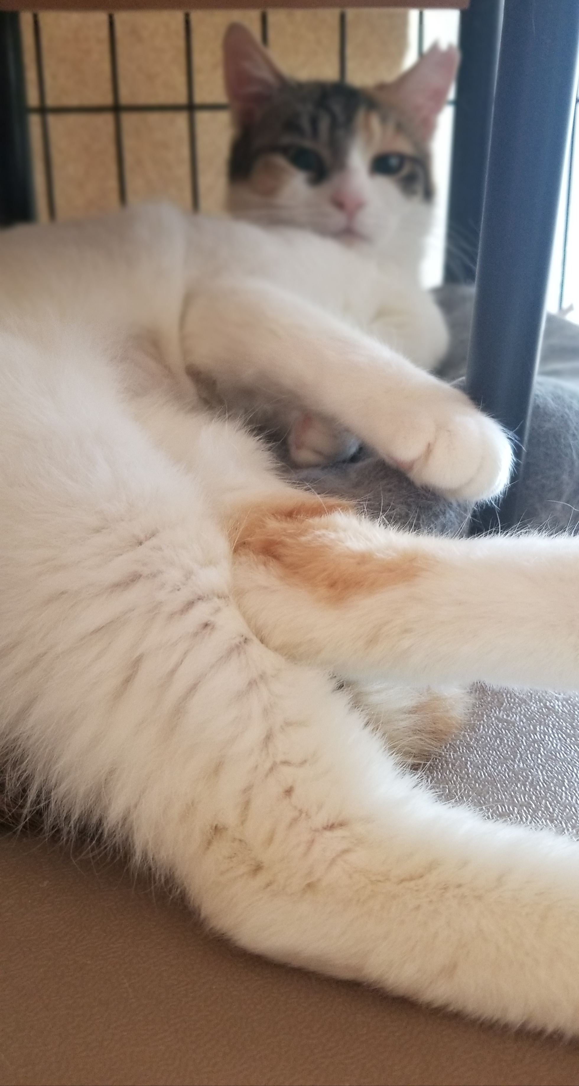 なのでゲージの扉を開けて、自由に保護猫部屋に出入りできるようにしました。