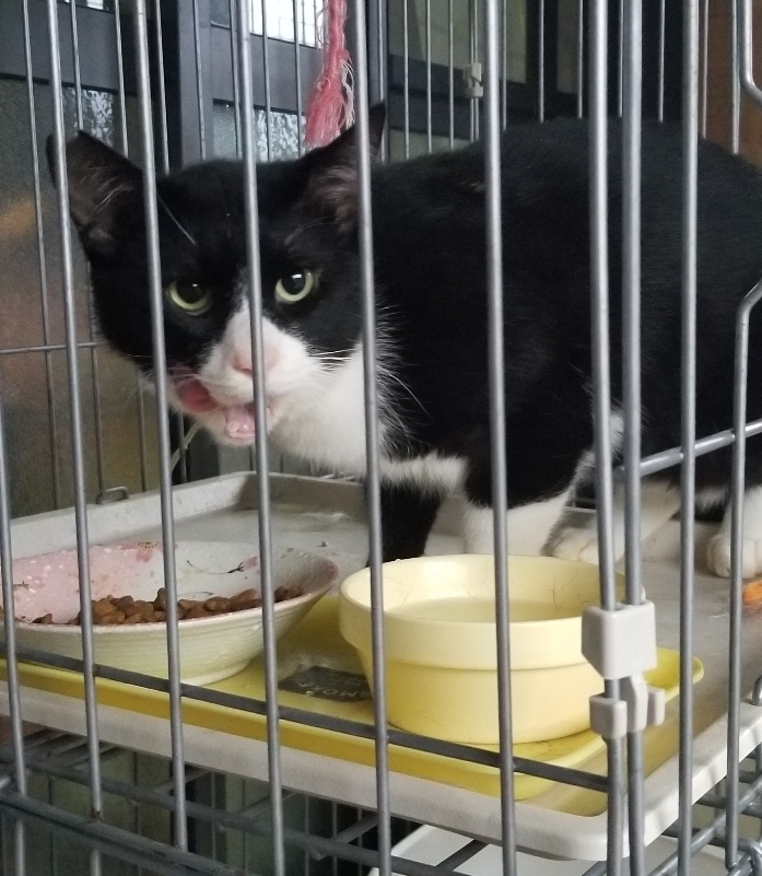 1階の保護猫部屋のノワール君、トイレは完璧に使えるようになりました!