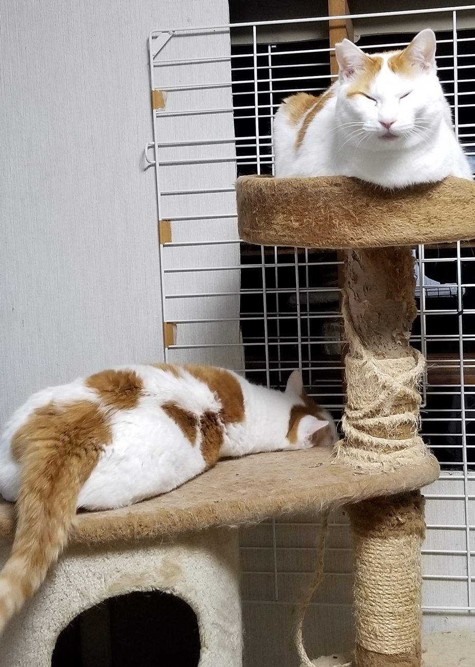 それでもおてんばなちゃこはキャットタワーに上ったりします。