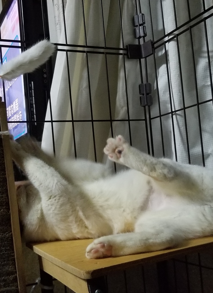 新参者の影響で食が落ちてリビング側に何度も走ってきて脱出している京香ちゃんですが、声掛けを続けて遊んであげたり撫でまわしたりで少しづつ落ち着いてきました。