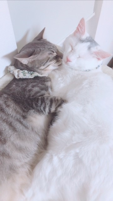 ママさんのマッサージを受けてから眠るそうです!かわいいにゃあ