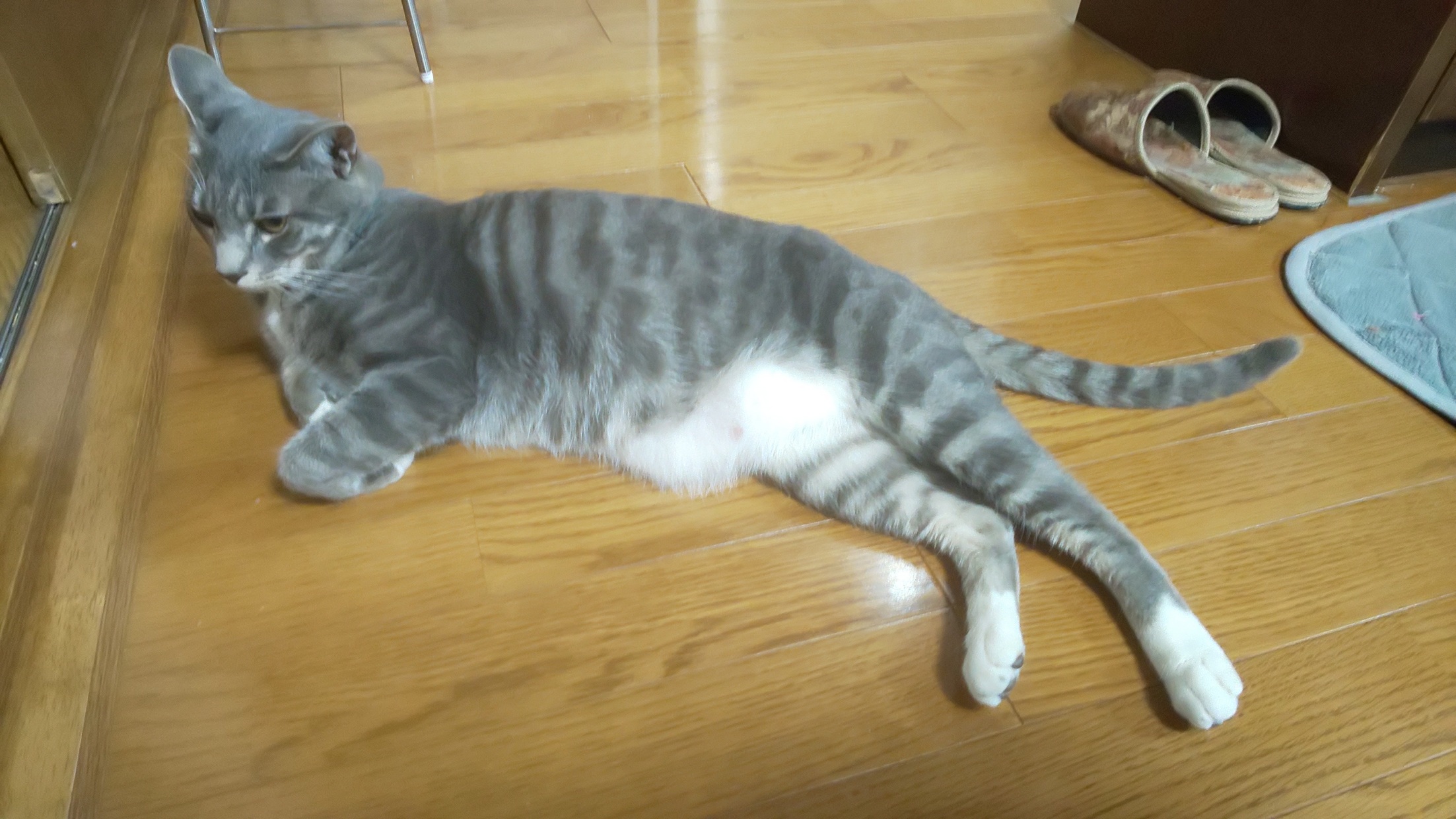 カイトくん、ロミちゃんは最近は暑くてフローリングに引っ付いているそうです(笑)