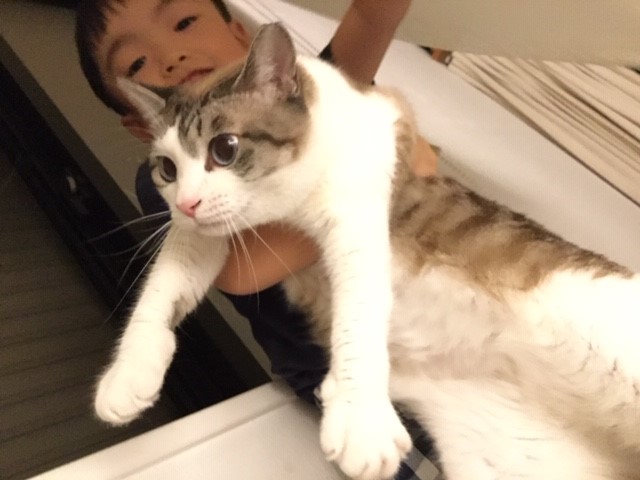 レオ君もトライアルの時にどうやってキャリーに入れようか悩むくらい馴れていない子でした。威嚇がすごくてシャーシャーぺっぺは当たり前だった子が、抱っこ大好きなたれっ子になるなんてすごいことです。