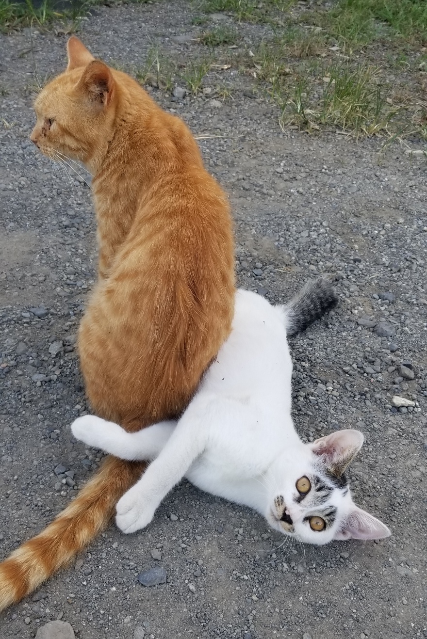ただ子猫たち、お腹を空かせて近くに来ます。
