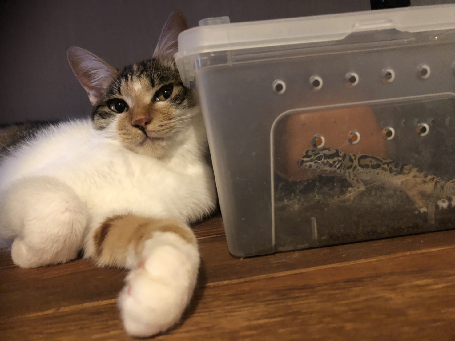 ぐらちゃん、ヒョウモントカゲモドキ?とツーショットです。