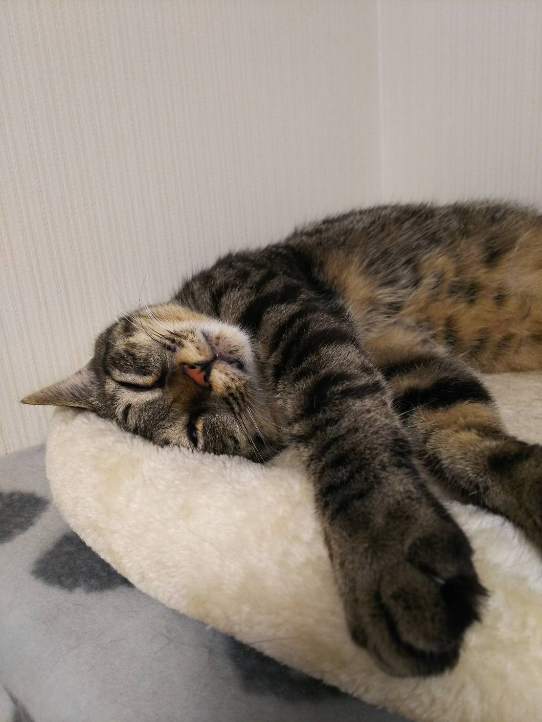 人に馴れていて保護した日にはこんなに家猫生活当たり前な子です。