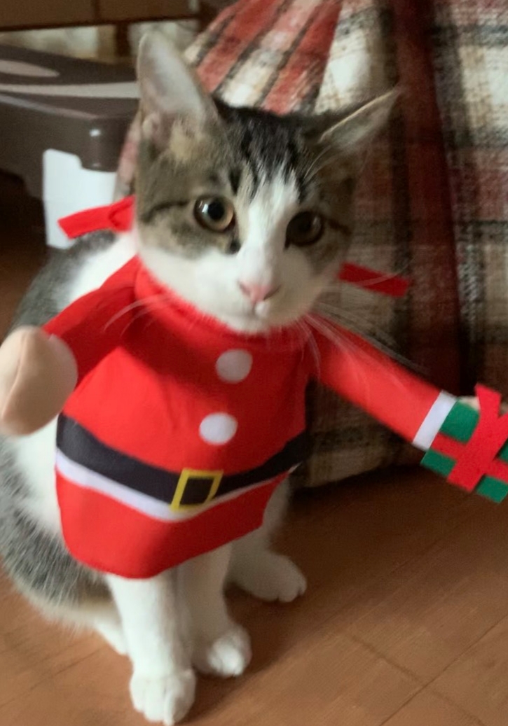 あずきちゃん(むつみちゃん)はクリスマスのコスプレまでさせてくれるくらいにすっかり馴れて甘ったれちゃんになっています。