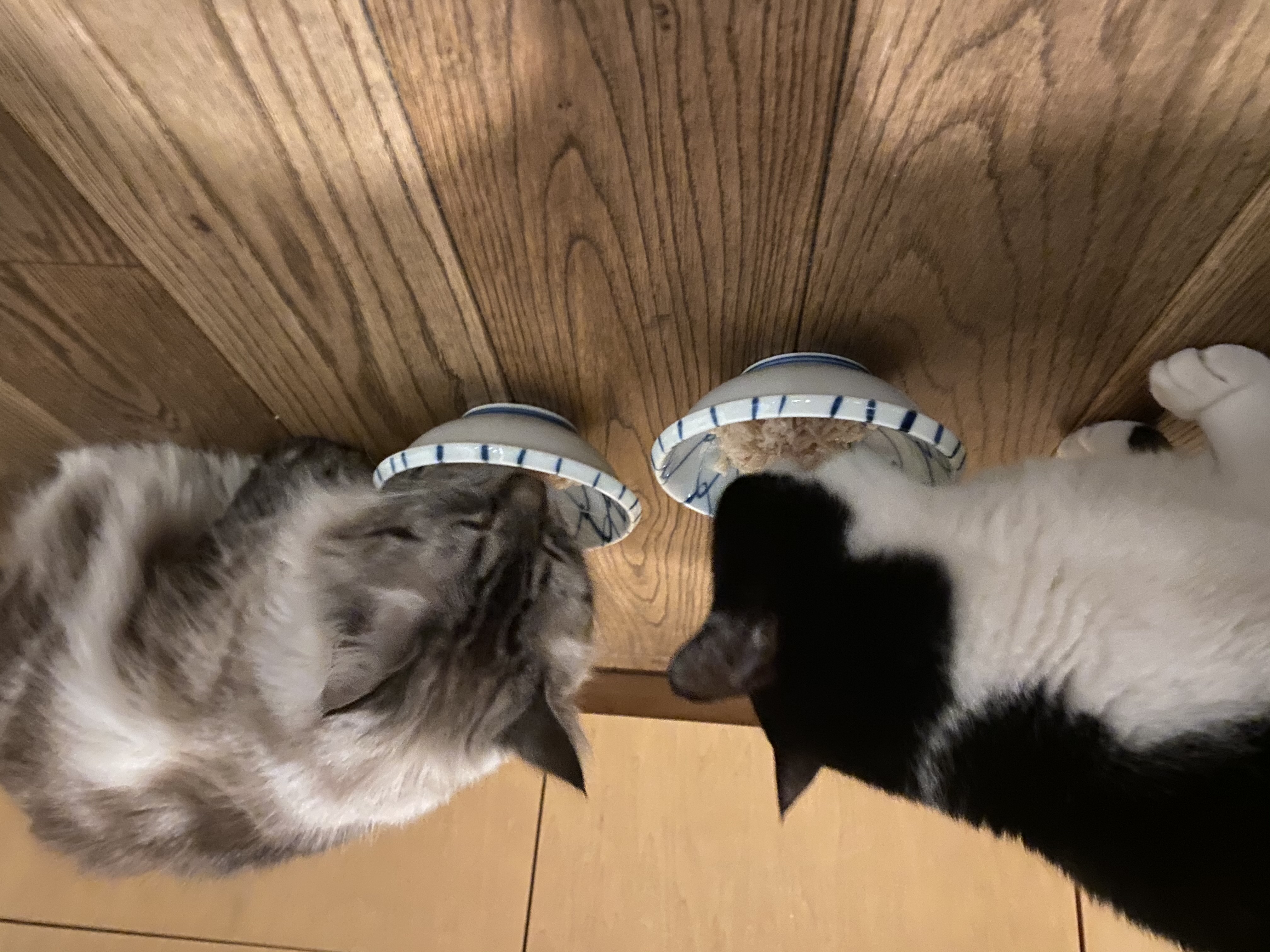 早食いしてアンジュちゃんのご飯を取ってしまうかいくん。