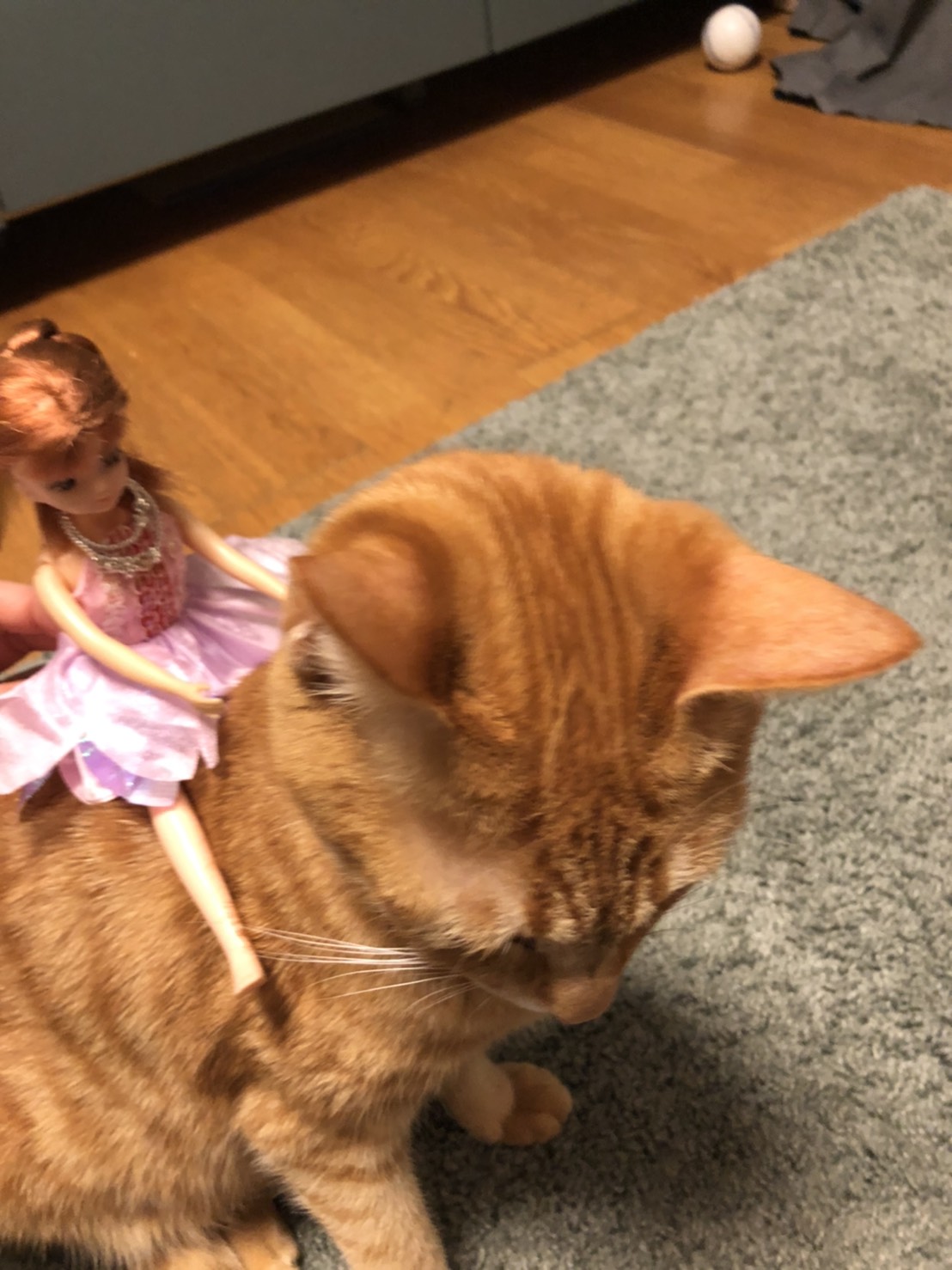 政宗君は背中にリカちゃん人形?載せて遊ばれています(笑)
