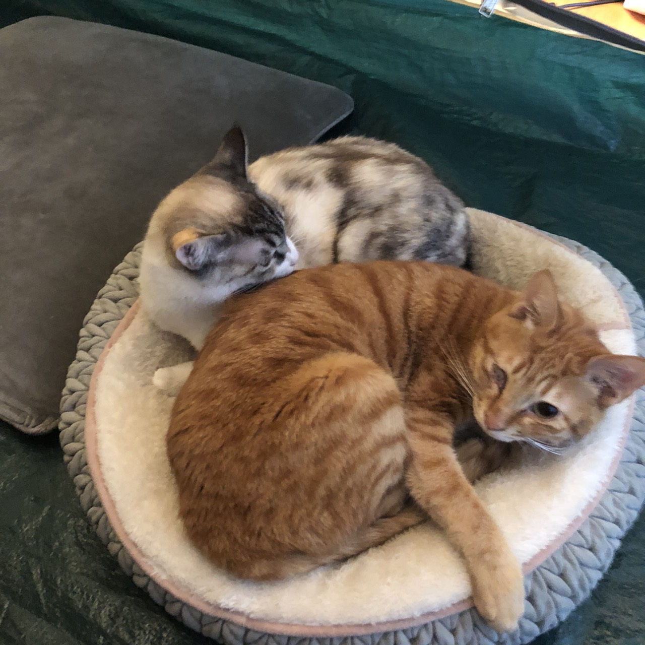 先住のミー子ちゃんはやまとくんが大好きで逆毛にしてグルーミングしてくれるそうです(笑)