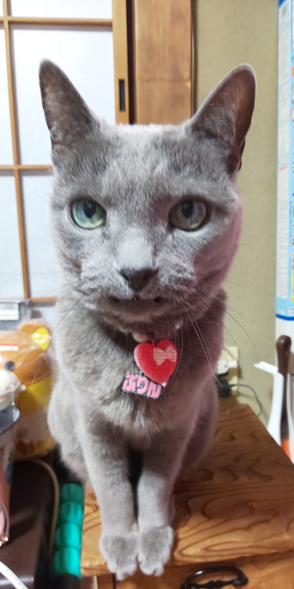 ロシアンブルーのプリンちゃんは預かり先からとんとん拍子で茶々ちゃんのママさんのおうちの子になりました。