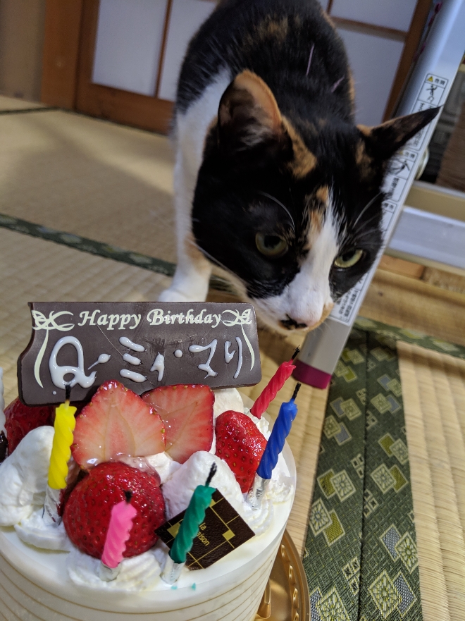 Q太郎君、ミィちゃん、マリちゃんのバースディケーキ、立派ですね~!
