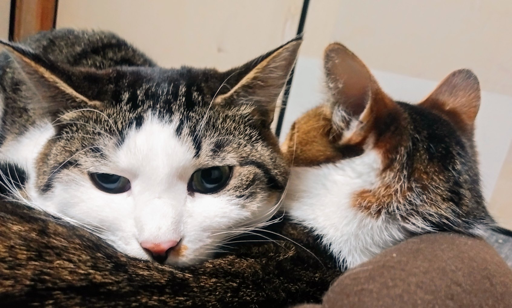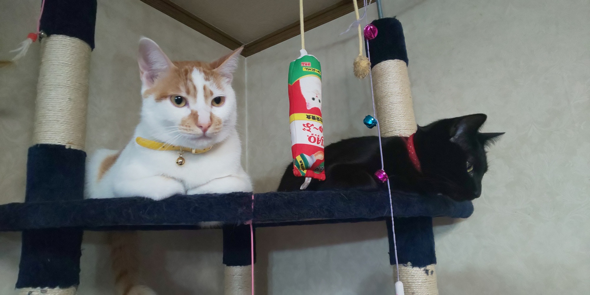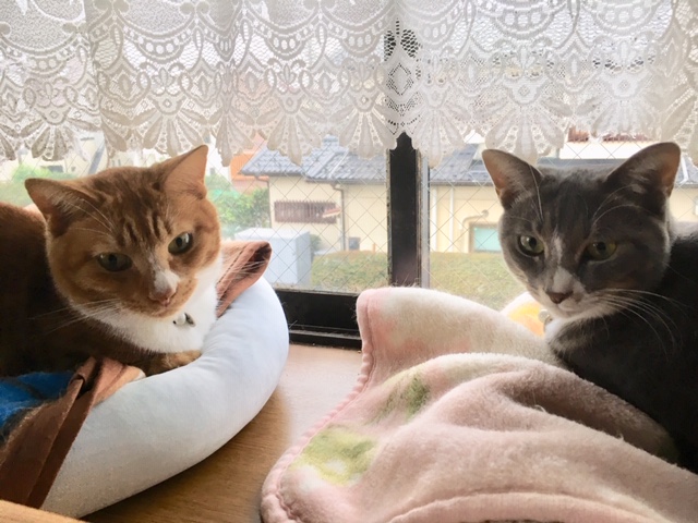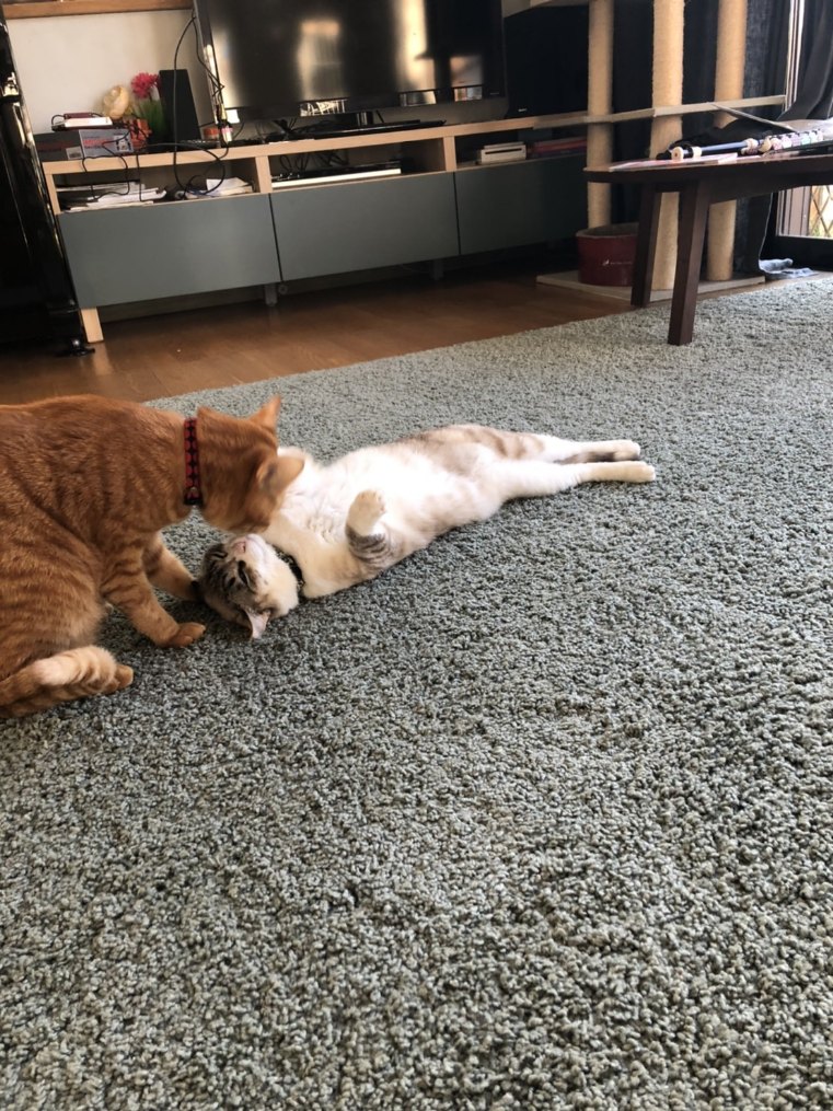 うどんくん、先住さんともこんなに近く生活できるようになりました。