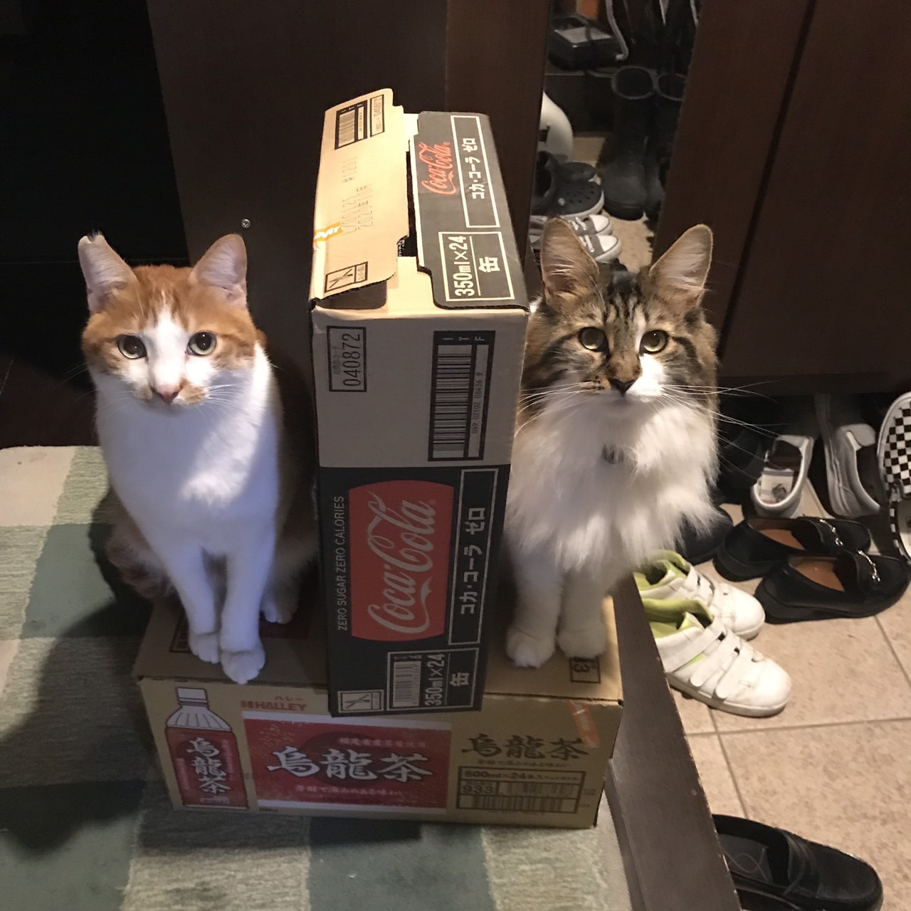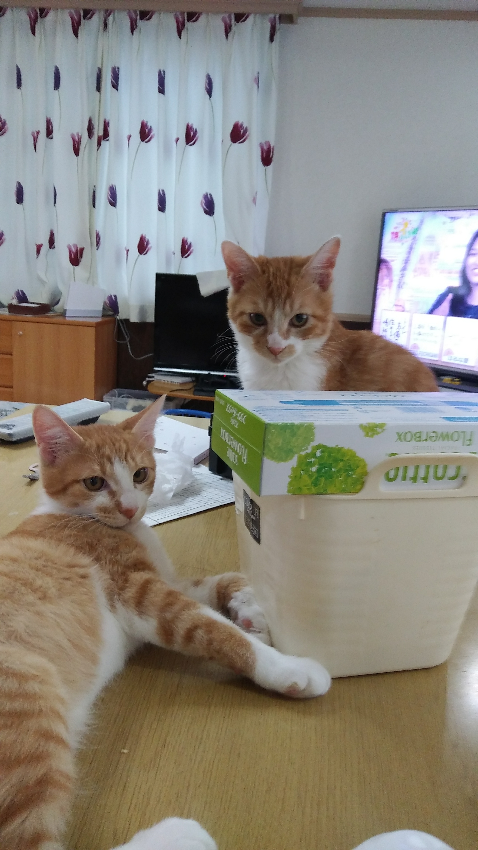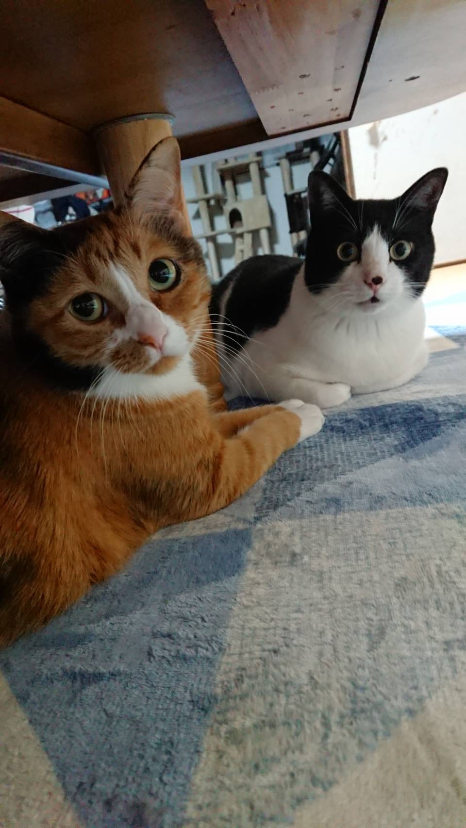 威嚇し合うこともなくずっとそこで暮らしていたかのような3にゃんで人間が驚いています(笑)