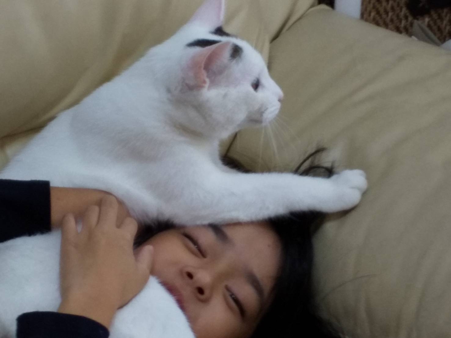 飼い主のおばあちゃんが入院して手放されたプリンちゃんを3匹目の娘として迎えてくださいました。