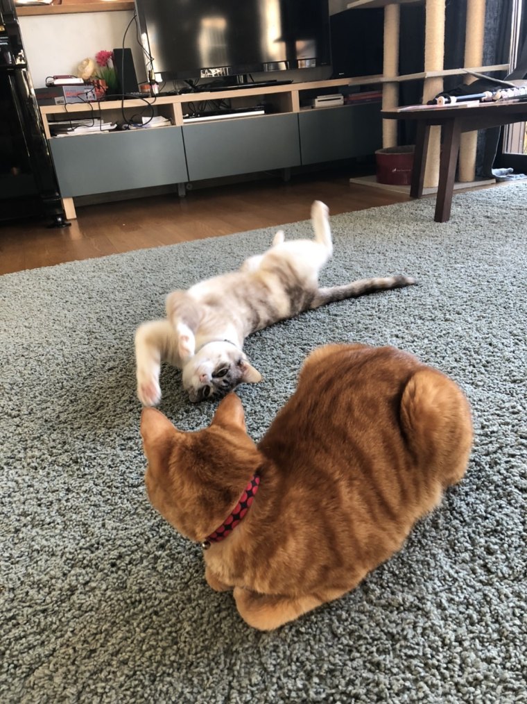 しろたん、先住のゆいちゃんとも仲良くなってきたそうです!