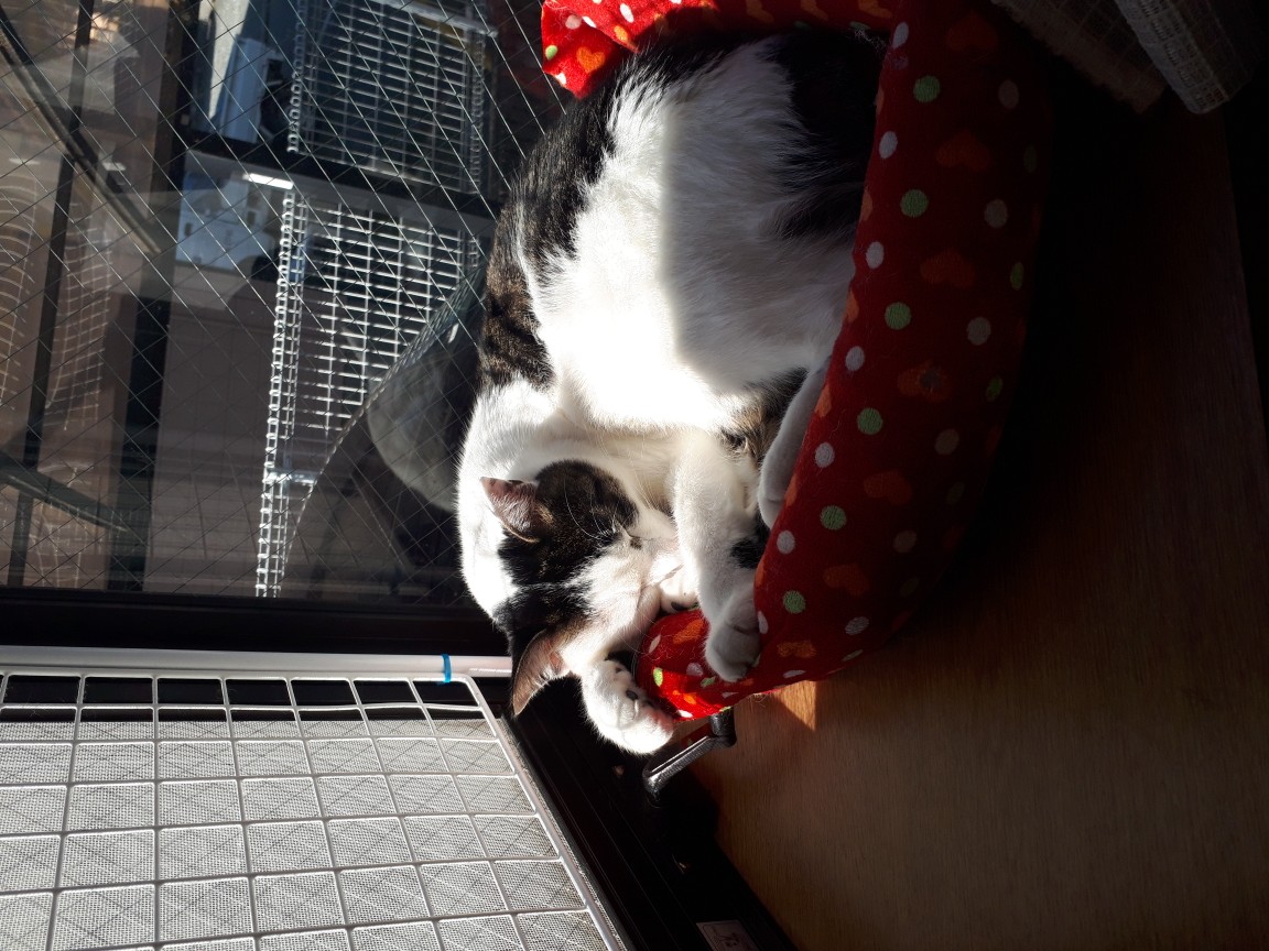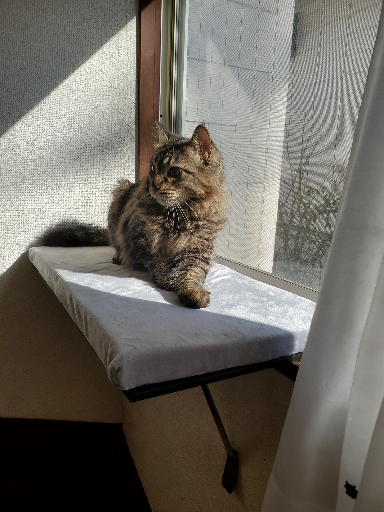 かいくん、窓台を付けてもらってお外に夢中なようです。